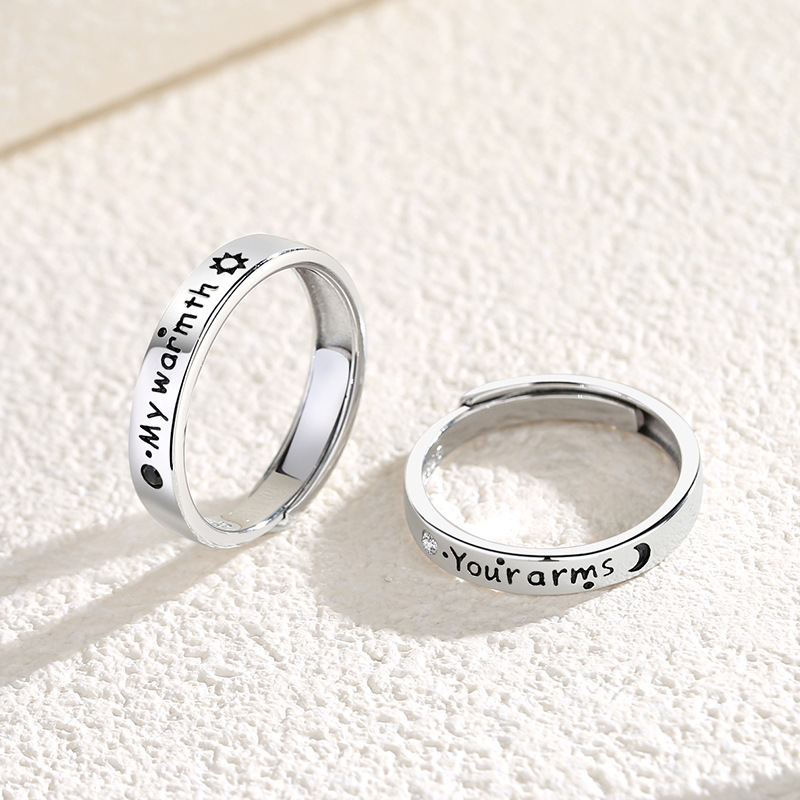 Men's And Women's Fashion Sterling Silver Simple Monogrammed Couple's Ring