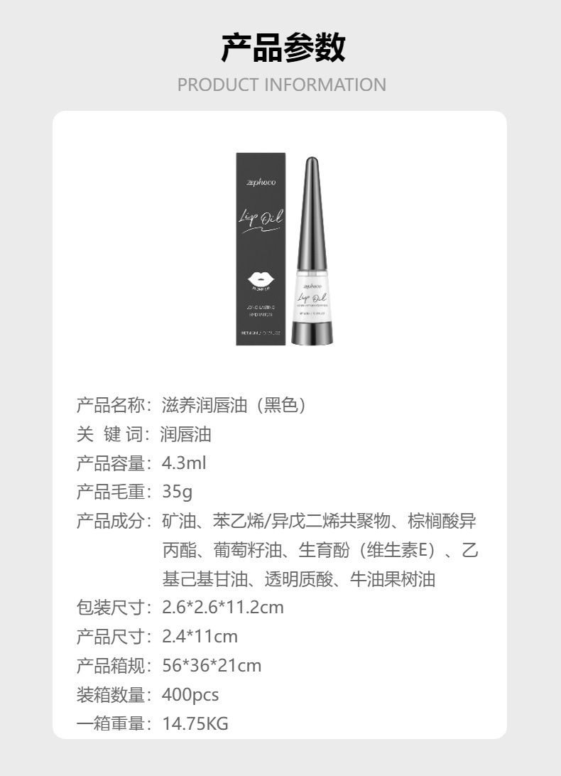 Product information:Ingredients: mineral oil, styrene/isoprene copolymer, isopropyl palmitate, grape seed oil, tocopherol (vitamin E), ethylhexyl glycerol, hyaluronic acid, shea butter.Packing list:Lip oil *1