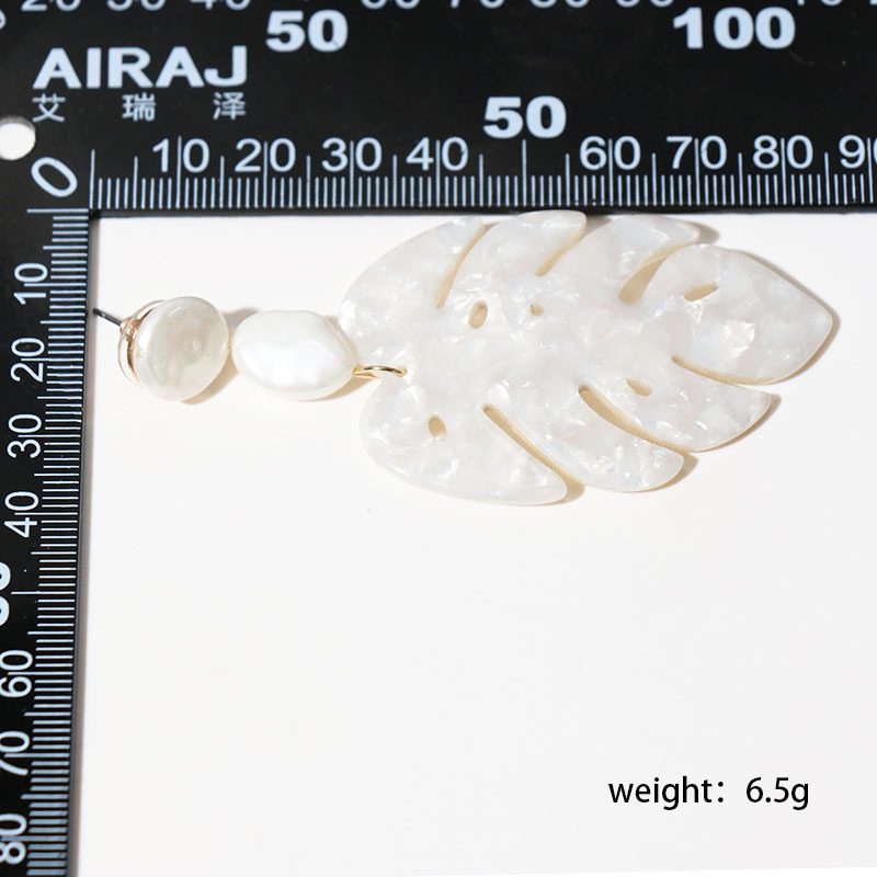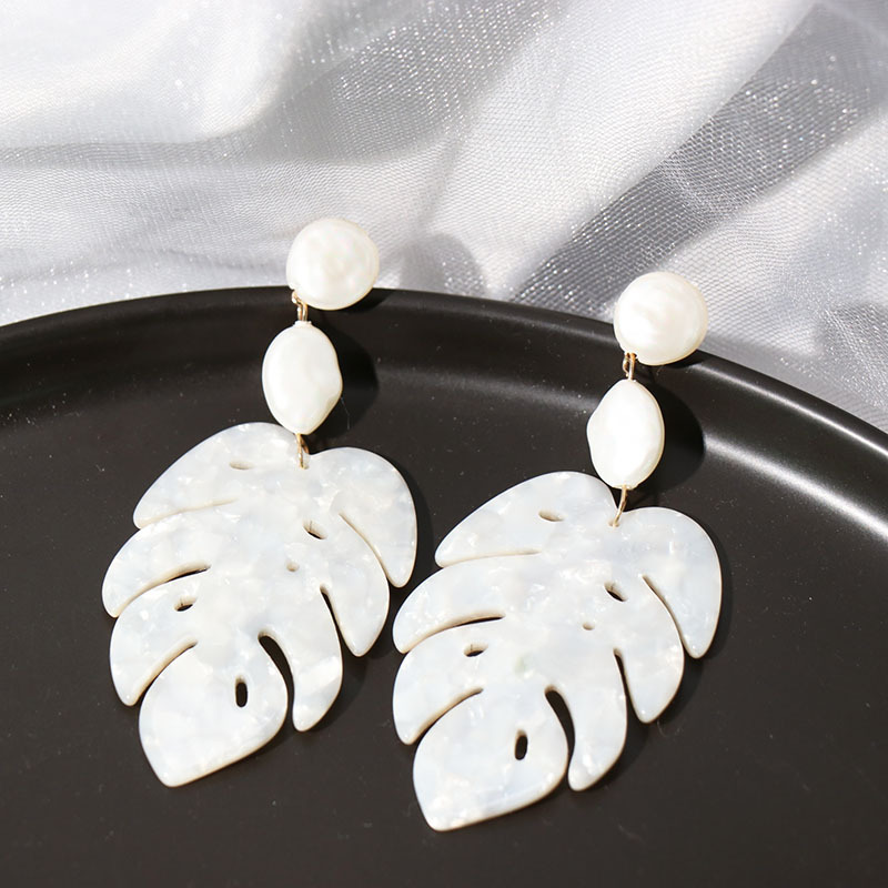 Big Exaggerated Tassel Earrings Leaf-Shaped Pearls