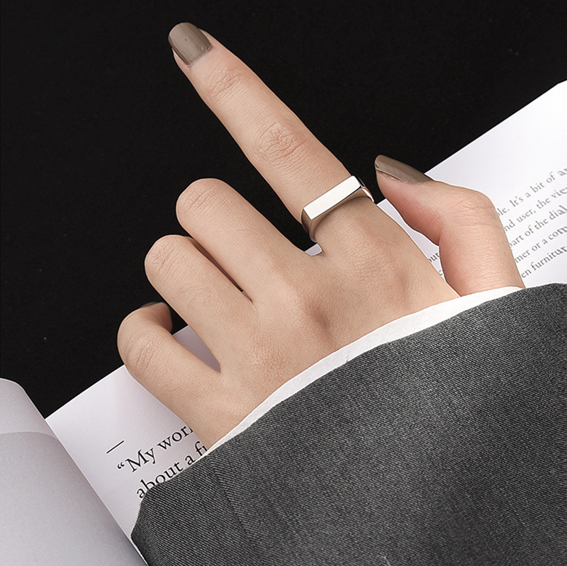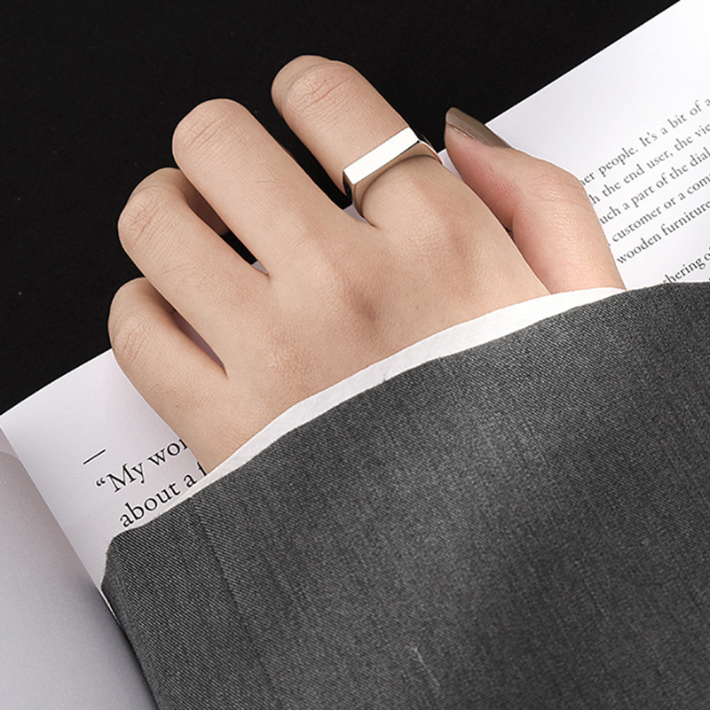 Square Ring Female Special-interest Design Single Ring Simple Vintage Open-end