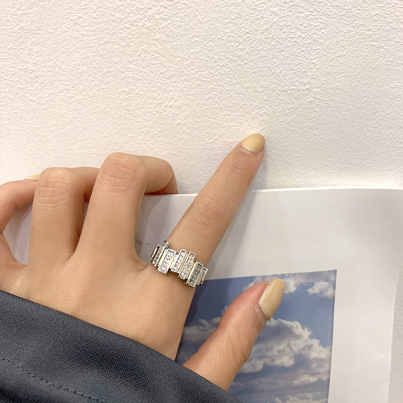 Product information:Type: RingMaterial: brass inlaid with zircon, electroplated with four layers of thick gold to keep the colorModeling: GeometryStyle: Women'sColor: J263, Y88Size: Adjustable openingPacking list:Copper ring X1