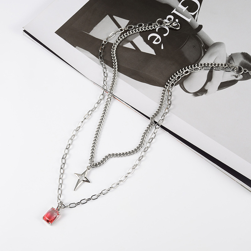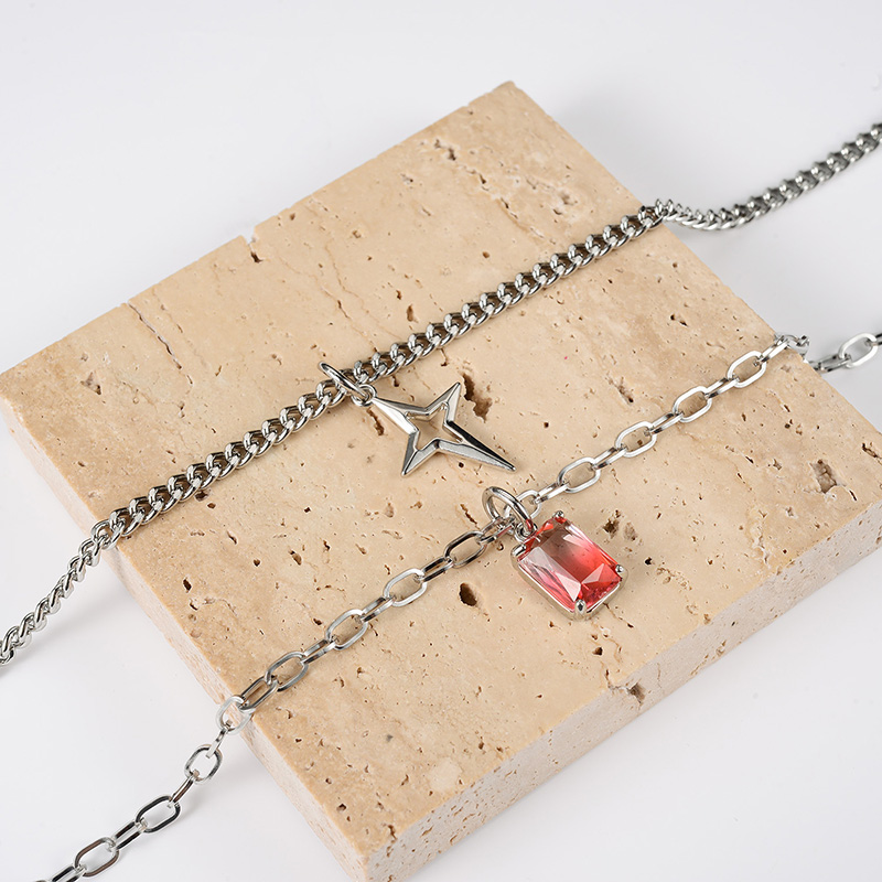 Product Information:Style: European and AmericanMaterial: stainless steel chain + alloy + glassTreatment process: electroplatingType: Clavicle ChainStyle: Women'sPacking List:Clavicle chain*1