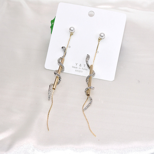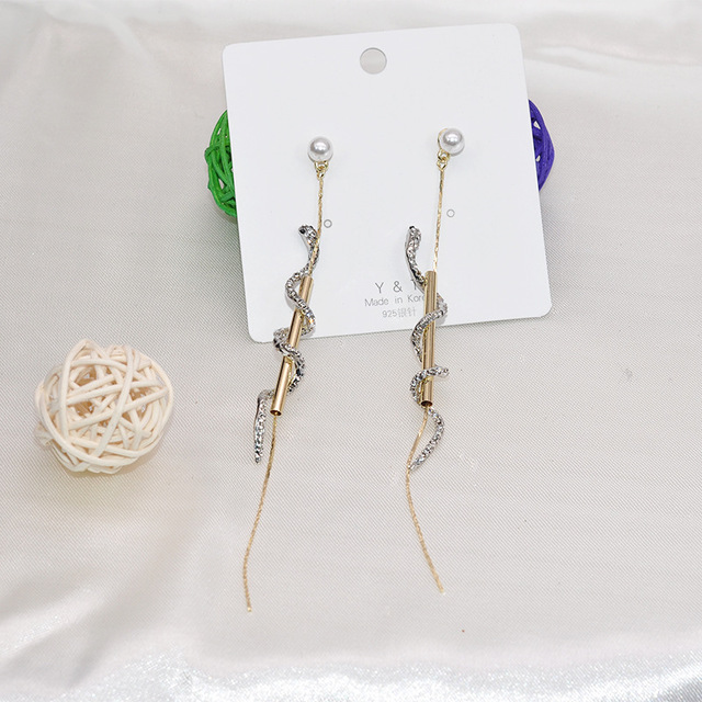 Product material: Rhinestone alloy s925 silver needleS925针适合圆脸的高级感蛇耳环女优雅长款网红耳坠小众珍珠耳