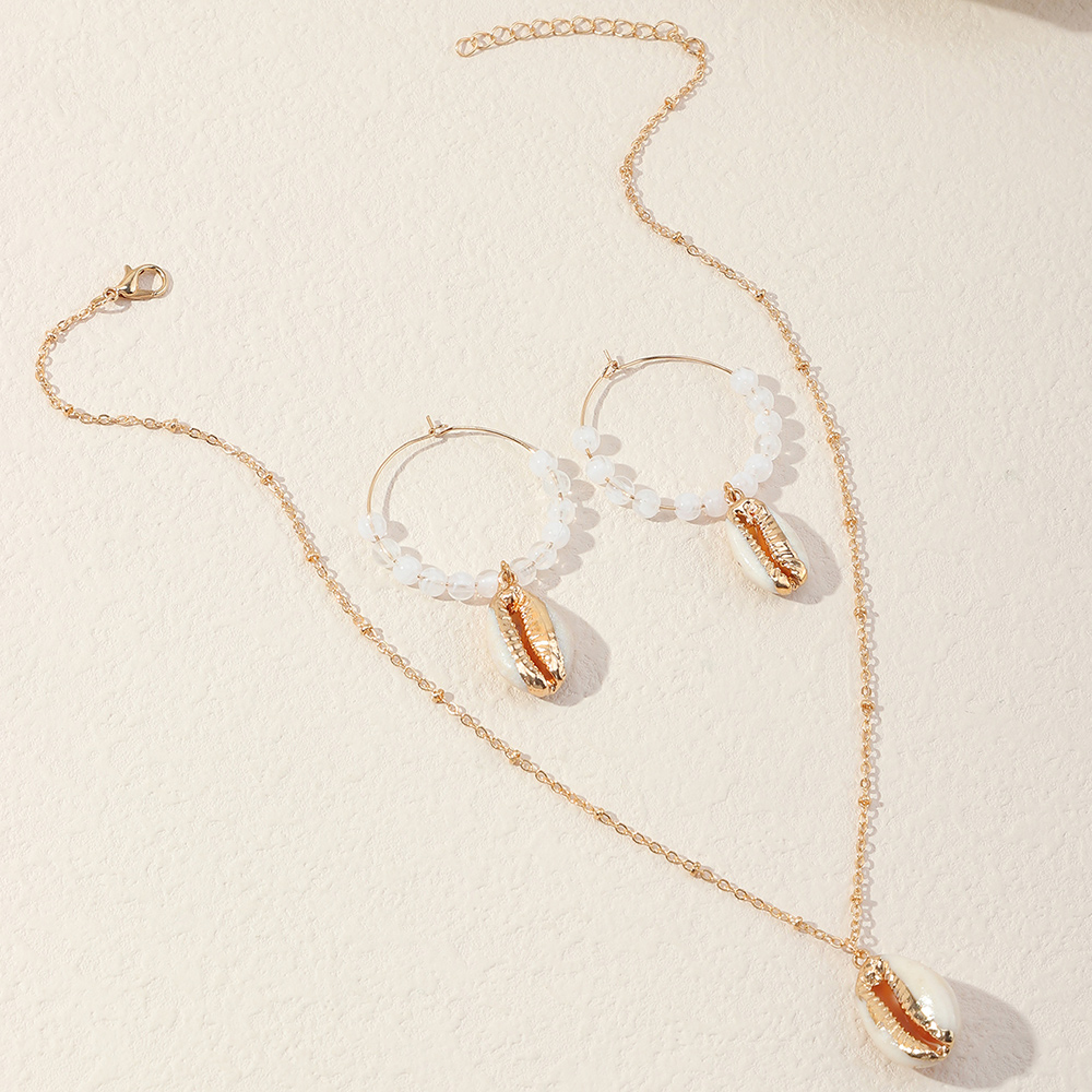 Product Information:Style: naturalMaterial: alloy + shellTreatment process: electroplatingType: Clavicle chain and earringsStyle: Women'sPacking List: Clavicle chain and earrings*1