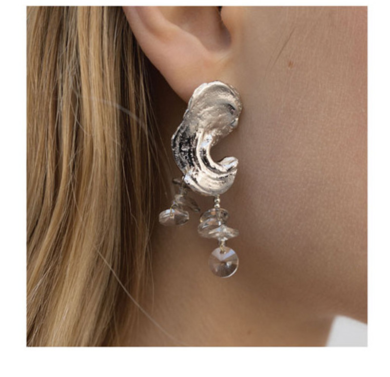 Style: European and AmericanMaterial: CopperType: EarringsStyle: Women'sColor: white goldPopular elements: metal, retro