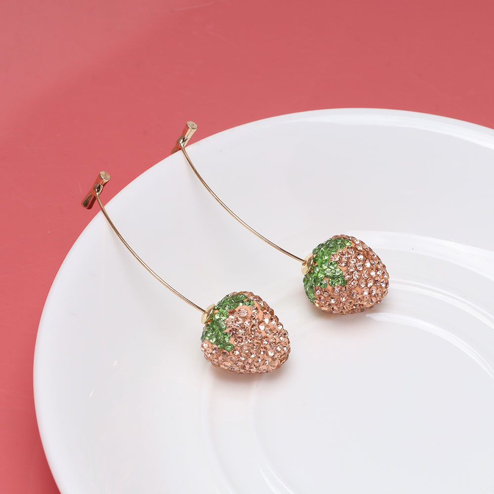 Product information:Color: c-659 red, c-659 pink, c-659 purple, c-659 champagne, c-659 Pink White, c-659 white powder Applicable population: Female Material: zinc alloy Shape: Geometry Popular elements: Strawberry