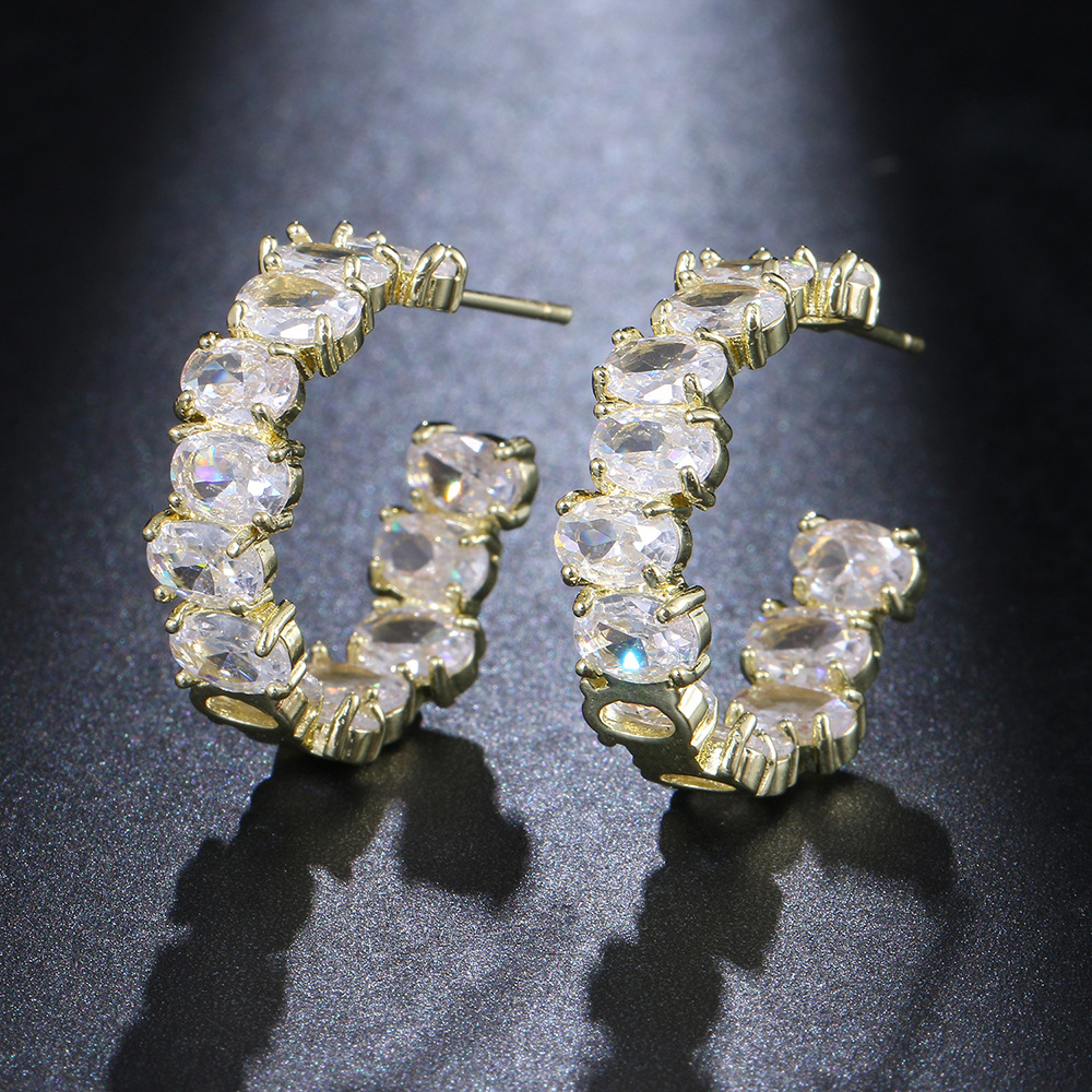 Product information:Treatment Process: ElectroplatingColor: green, real gold and white ZirconiumApplicable people: womenMaterial: CopperShape: GeometricPopular elements: English lettersStyle: ins style