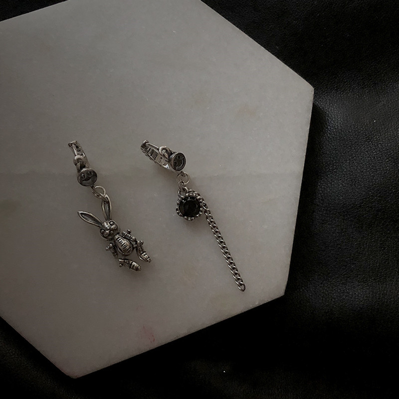 The length of the earring with the rabbit: about 4cmThe earring length with the chain: Approximately 5.2cmOutside diameter of ear ring: 1.2cmColor classification: 1 pair