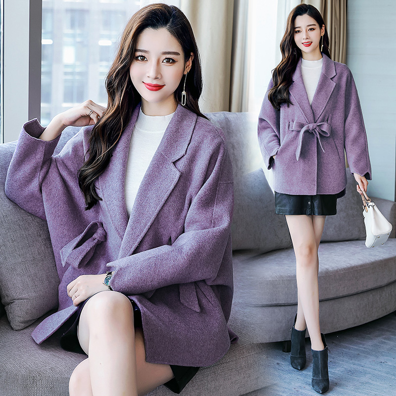 Size: S M Lpattern: plainStyle: CommuterCollar: suit collarClothing placket: laceColor classification: purple blueSleeve length: long sleeveLength: short