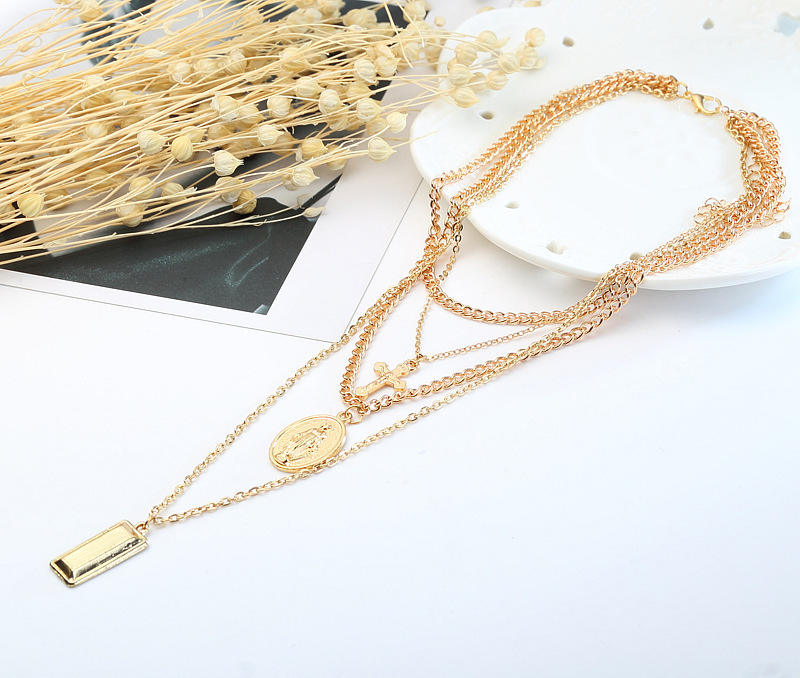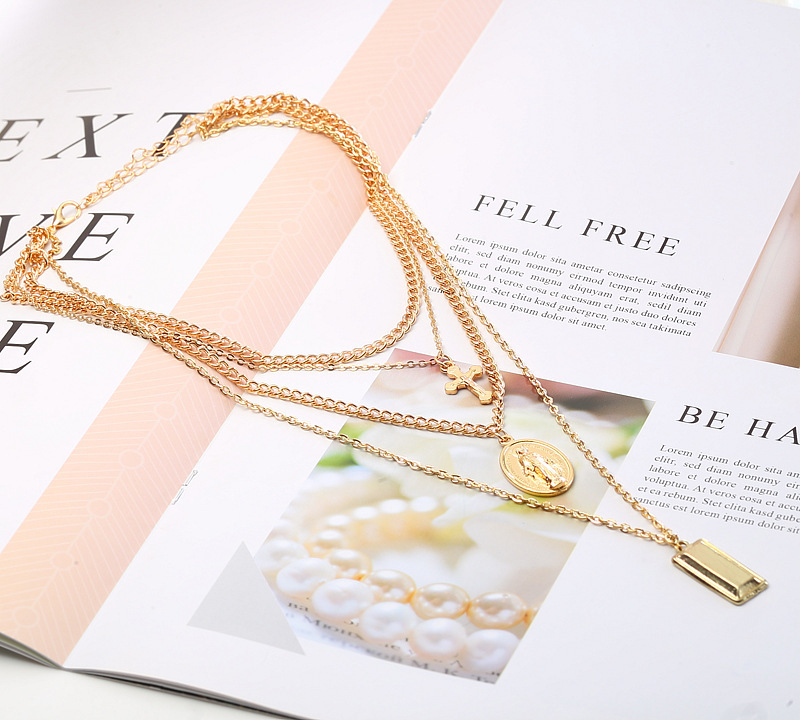 [product name]: Alloy Virgin Cross Multilayer Pendant Necklace