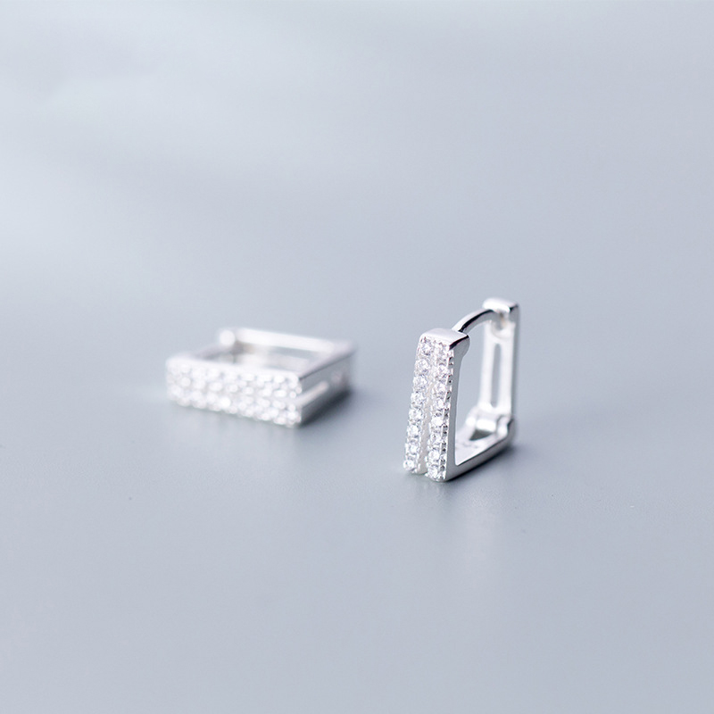 Simple Double-Layer Diamond-Studded Square Short Earrings Geometric Earrings