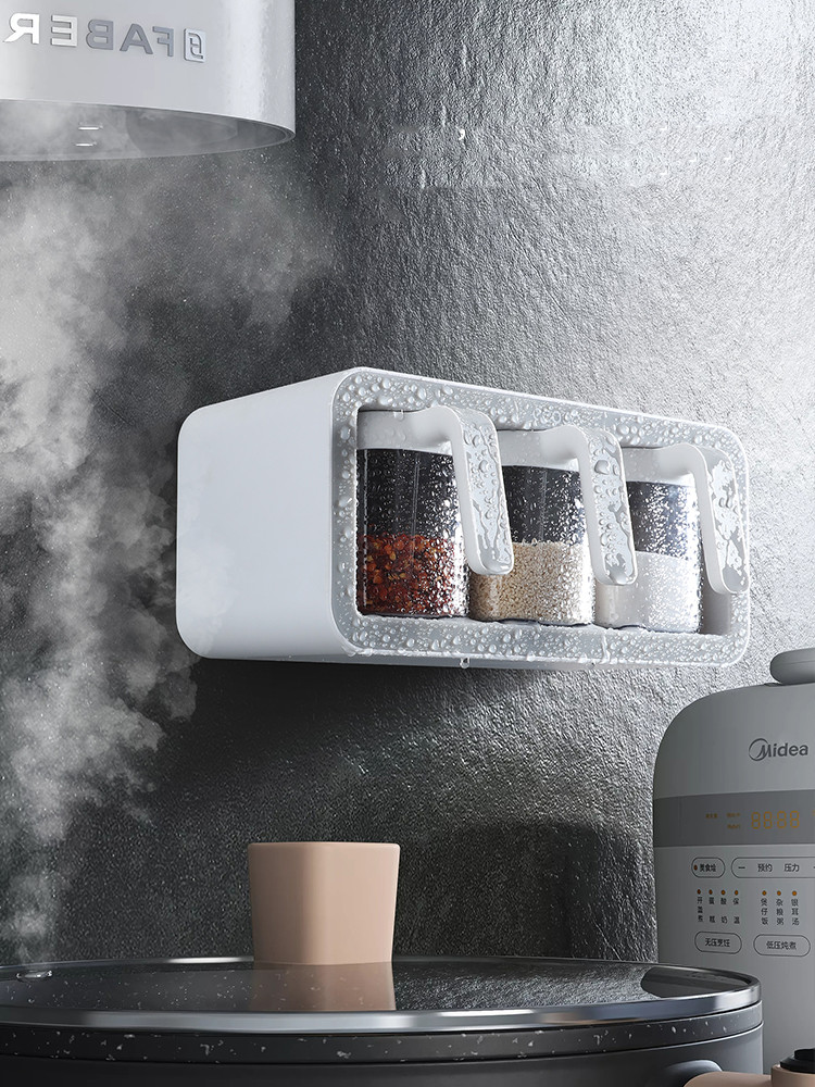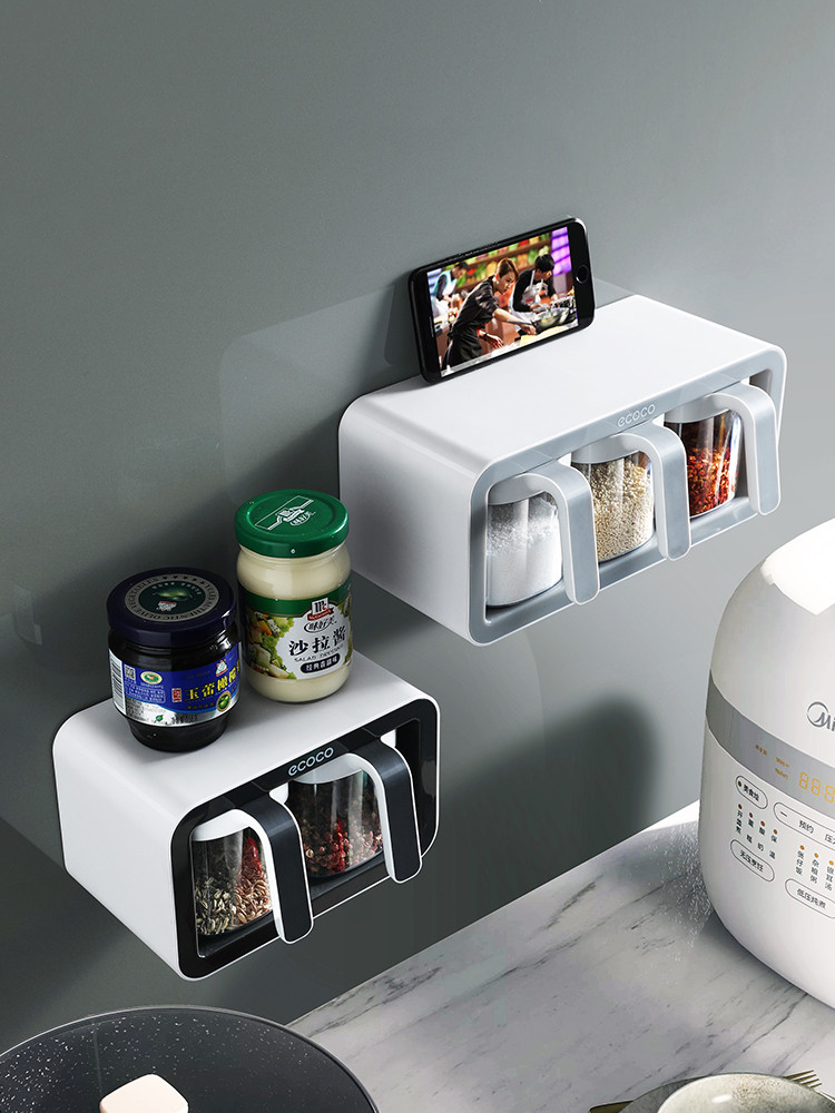 Product material:Material: PlasticDetails:Style: Nordic stylePopular elements: Solid colorApplicable space: KitchenStyle: Drawer type with lidItem: Wall-mounted seasoning jar