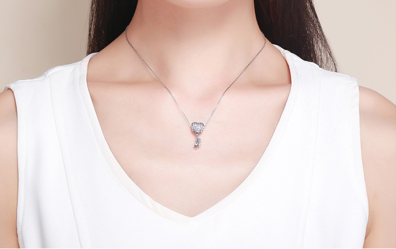 Korean fashion cute bear with balloons 925 silver pendant heart-shaped beaded bracelet silver jewelry accessories SCC1054