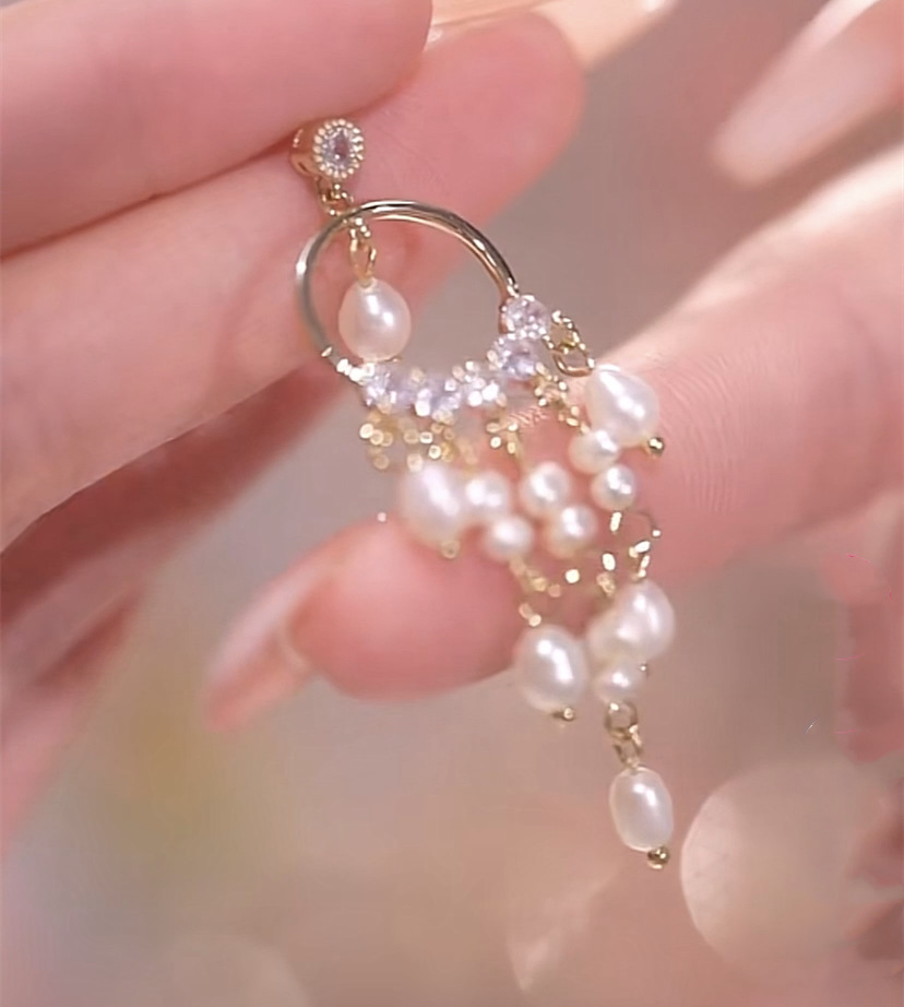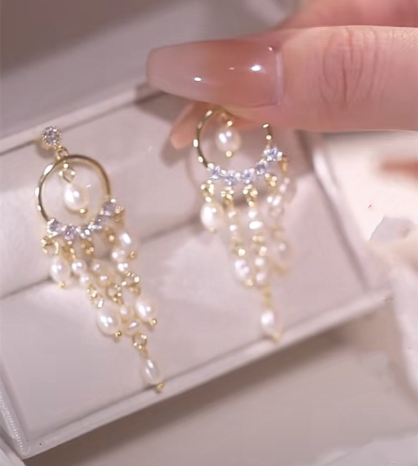Product information:Material : CopperType: earringsStyle : Women'sPopular elements: pearls, tasselPacking list:Earrings*1 pair