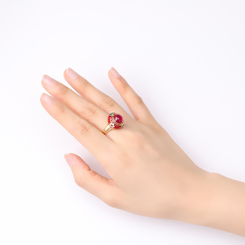 Size: Red Corundum Diameter: 0.9cm Ring Diameter: 1.55cm