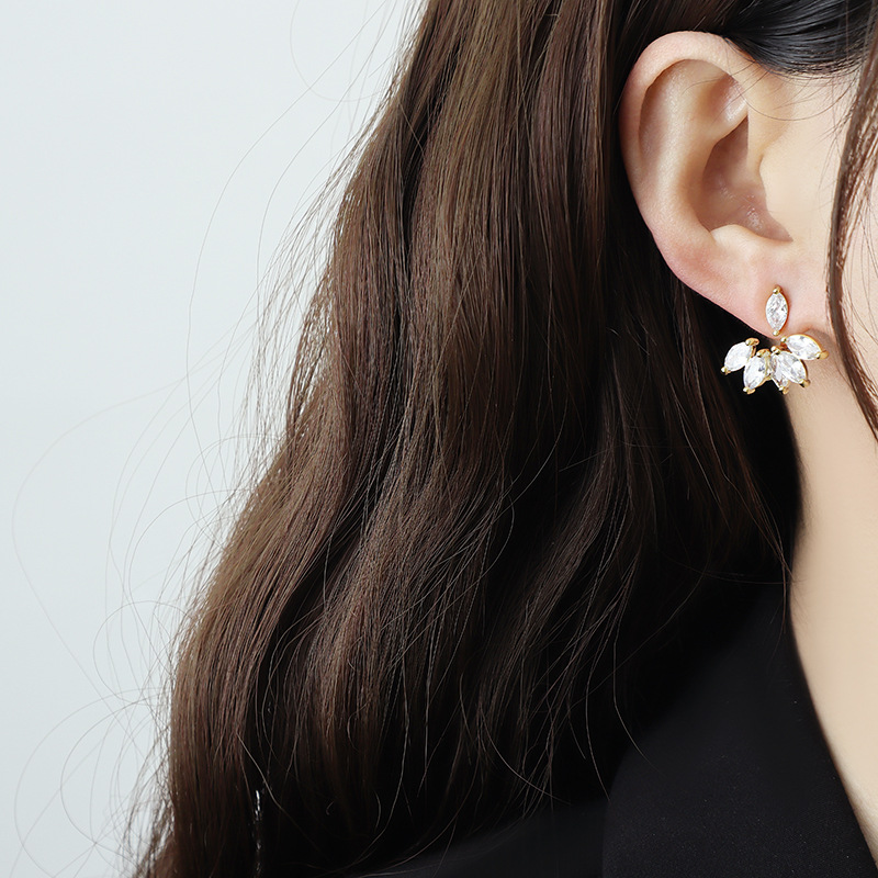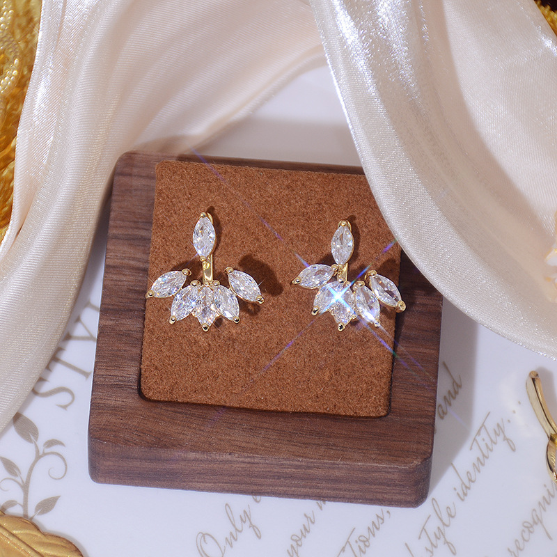 Product information :Material: metalTreatment: electroplatingModeling: geometricMaterial: gold-plated inlaid artificial products/semi-precious stonesColor: horse eye petal earringsPacking list:A pair of earrings