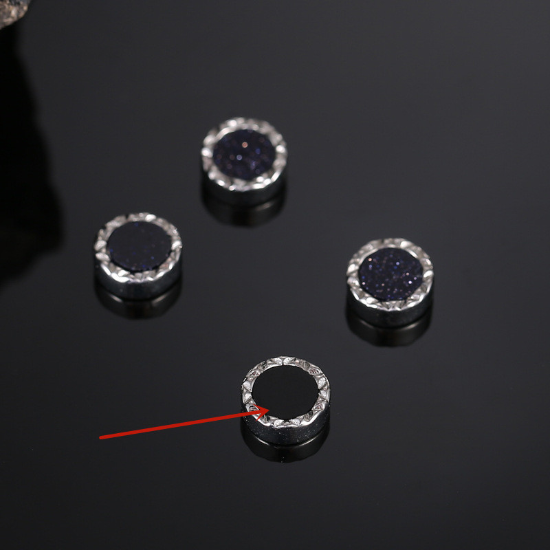 Product information:Treatment Process: Electroplating Color: ER550 black stone magnetic suction sheet, ER549 blue San magnetic suction sheet Style: Men's Material: Copper Shape: Geometry Popular elements: round Style: cold wind