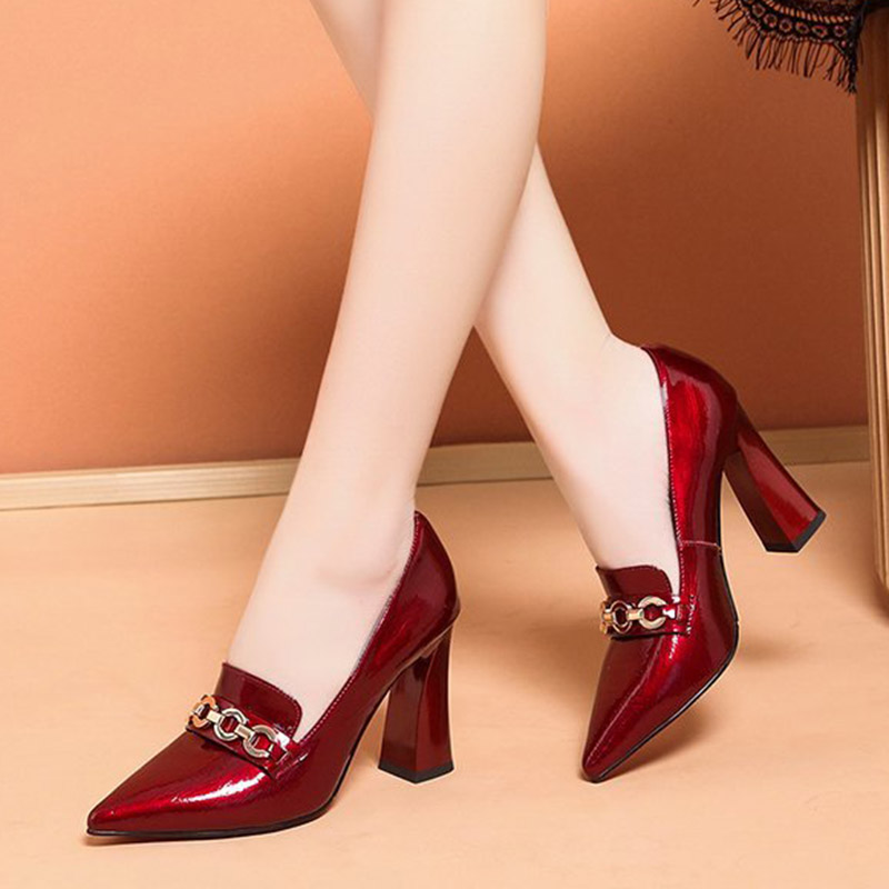 Color : Black (chain buckle), wine red (chain buckle), reddish brown (round buckle), black (round buckle), beige ()