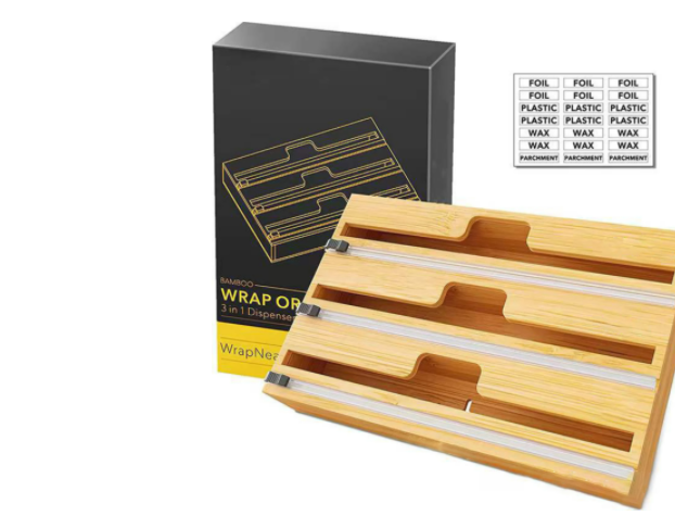 1. Wrap Dispenser: No more disorder and broken boxes, keep your drawers neat and organized! The wrap dispenser is designed for your Aluminum Foil, Wax Paper, Cling Film, and Parchment Paper.