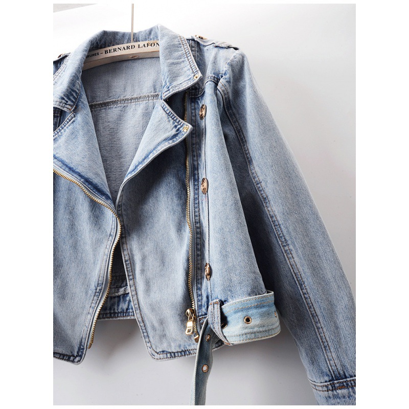 Product information: Color: light blue satin padded shoulder, dark blue satin padded shoulder Size: S,M,L,XL Version: Loose Fabric name: denim Applicable Gender: Female