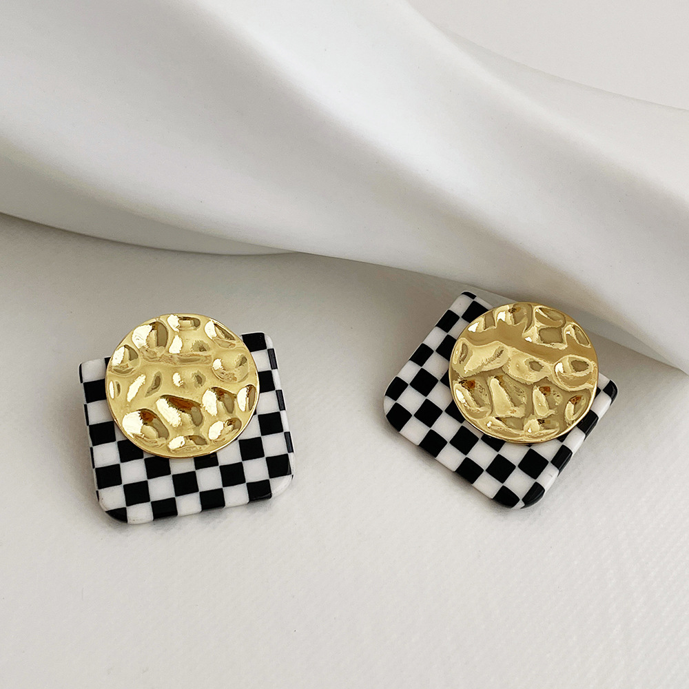 Product information:Material: plastic/resinStyle: Women'sModeling: GeometryColor: M323 square black and white grid earrings s925 silver pinPackage:Plastic earrings X1
