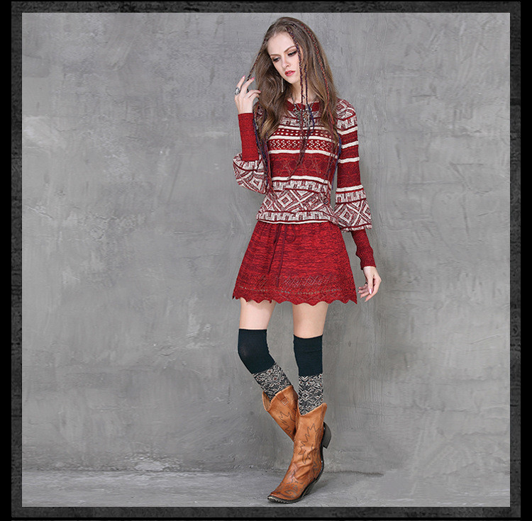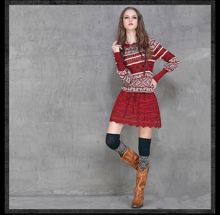 Autumn Winter Dress Women Vintage Hit color hollow wool Sweater Dresses Lantern sleeve Slim Knitting Sexy hollow Mini Dress
