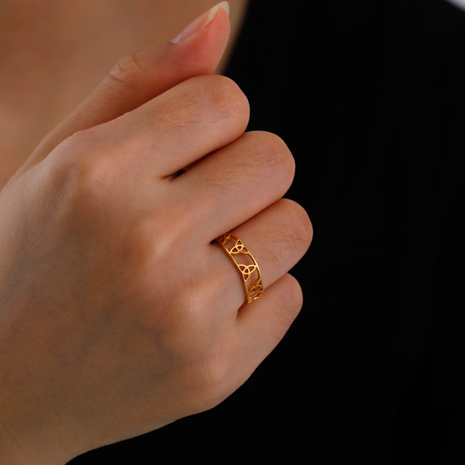 Product information:Type: RingTreatment Process: ElectroplatingColor: steel, goldApplicable people: UnisexSize: no.7, no.8, no.9, no.10, no.11Style: Celtic knot stainless steel ringMaterial: Stainless steelStyle: Retro