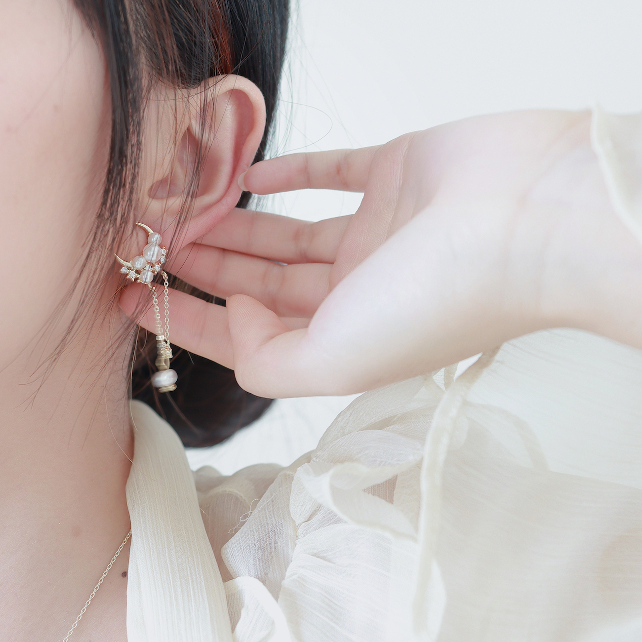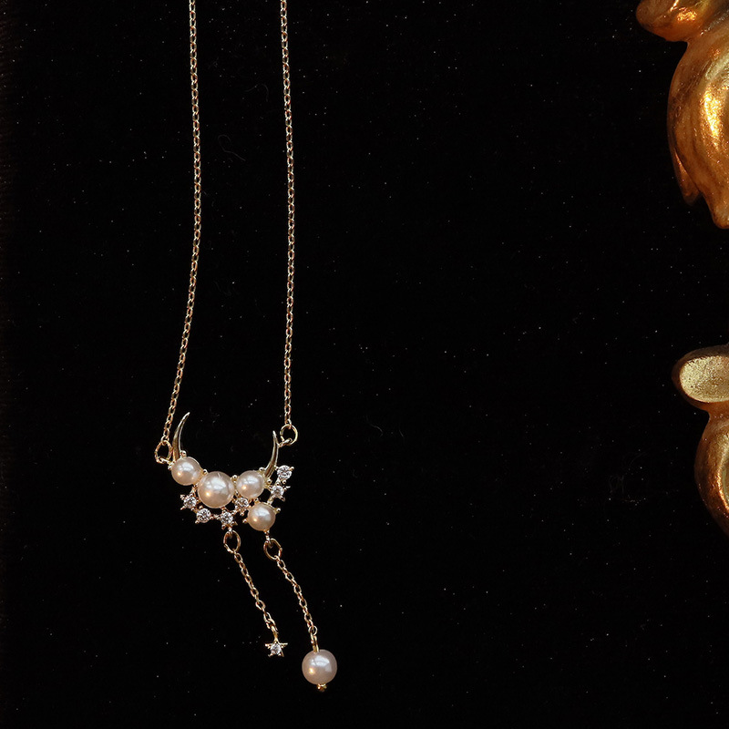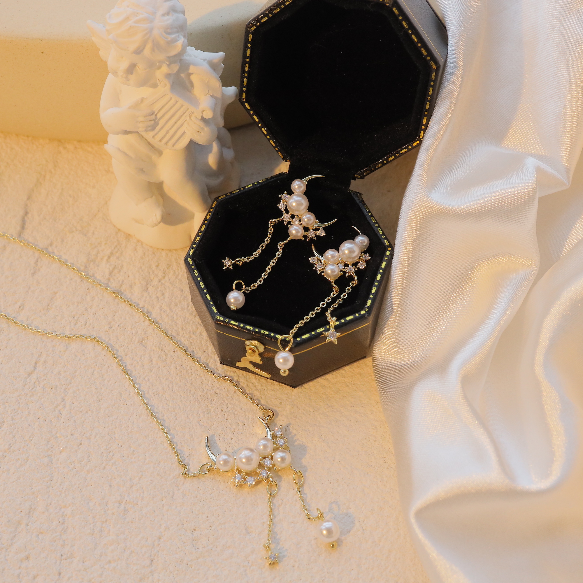 Color classification: moon necklace plated with real gold, Moon silver pin earrings plated with real gold pair