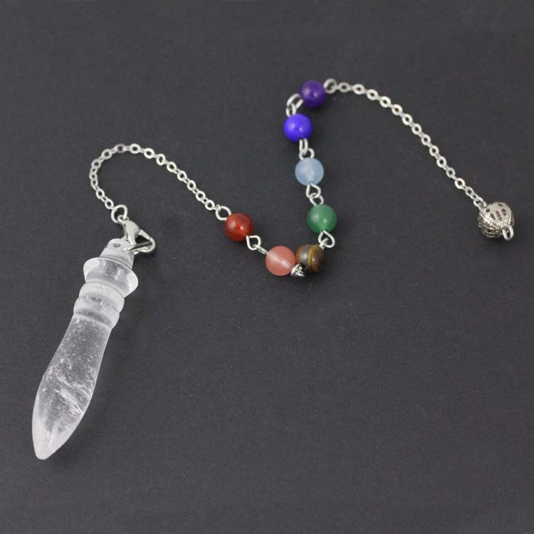 Product Information:Material: gems Modeling: GeometryColor: Amethyst, Pink Crystal, White Crystal, Lavender, Tiger's Eye, Green Aventurine, Blue Turquoise, Seven ChakrasshapePendulum chain, chakra chainPackageCrystal pendant *1