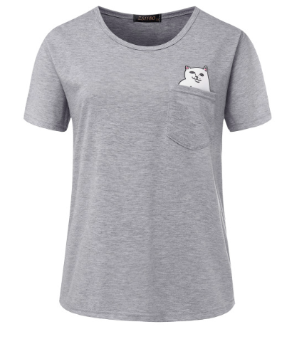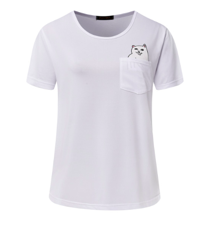 Women T Shirt Pocket cat Top Tee casual Short sleeve Tops