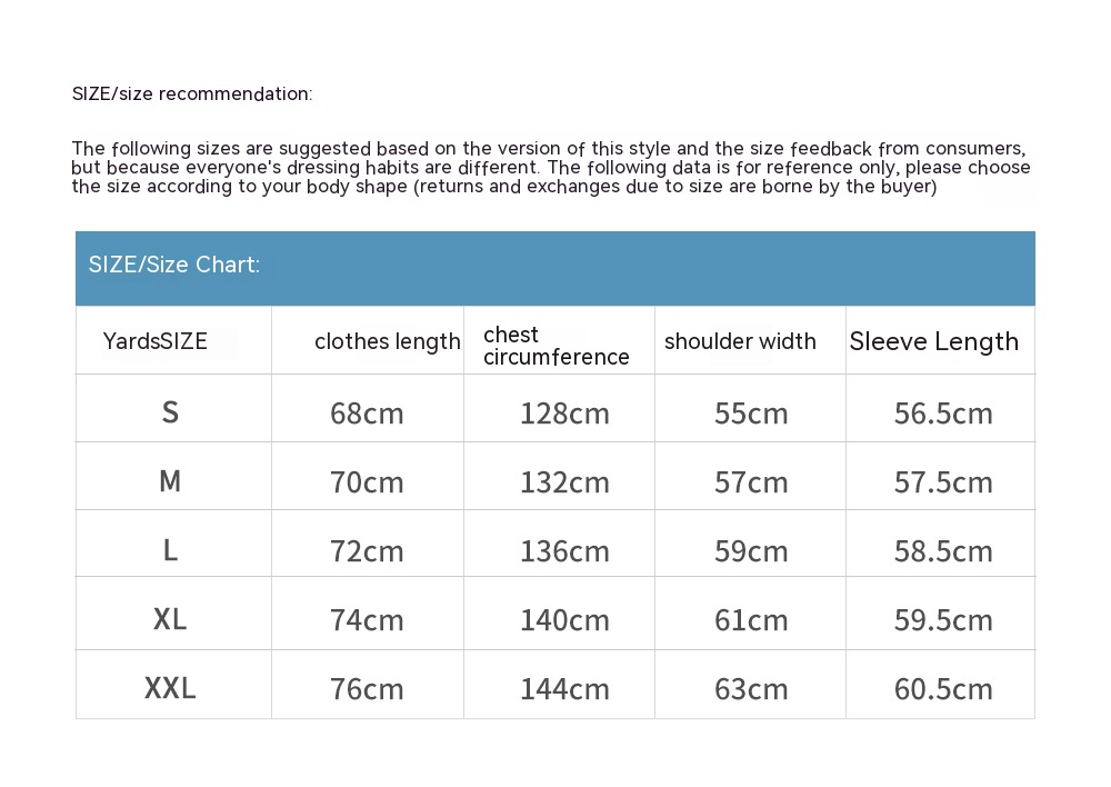 1. Asian sizes are 1 to 2 sizes smaller than European and American people. Choose the larger size if your size between two sizes. Please allow 2-3cm differences due to manual measurement. 2. Please check the size chart carefully before you buy the item, if you don't know how to choose size, please contact our customer service. 3.As you know, the different computers display colors differently, the color of the actual item may vary slightly from the following images.