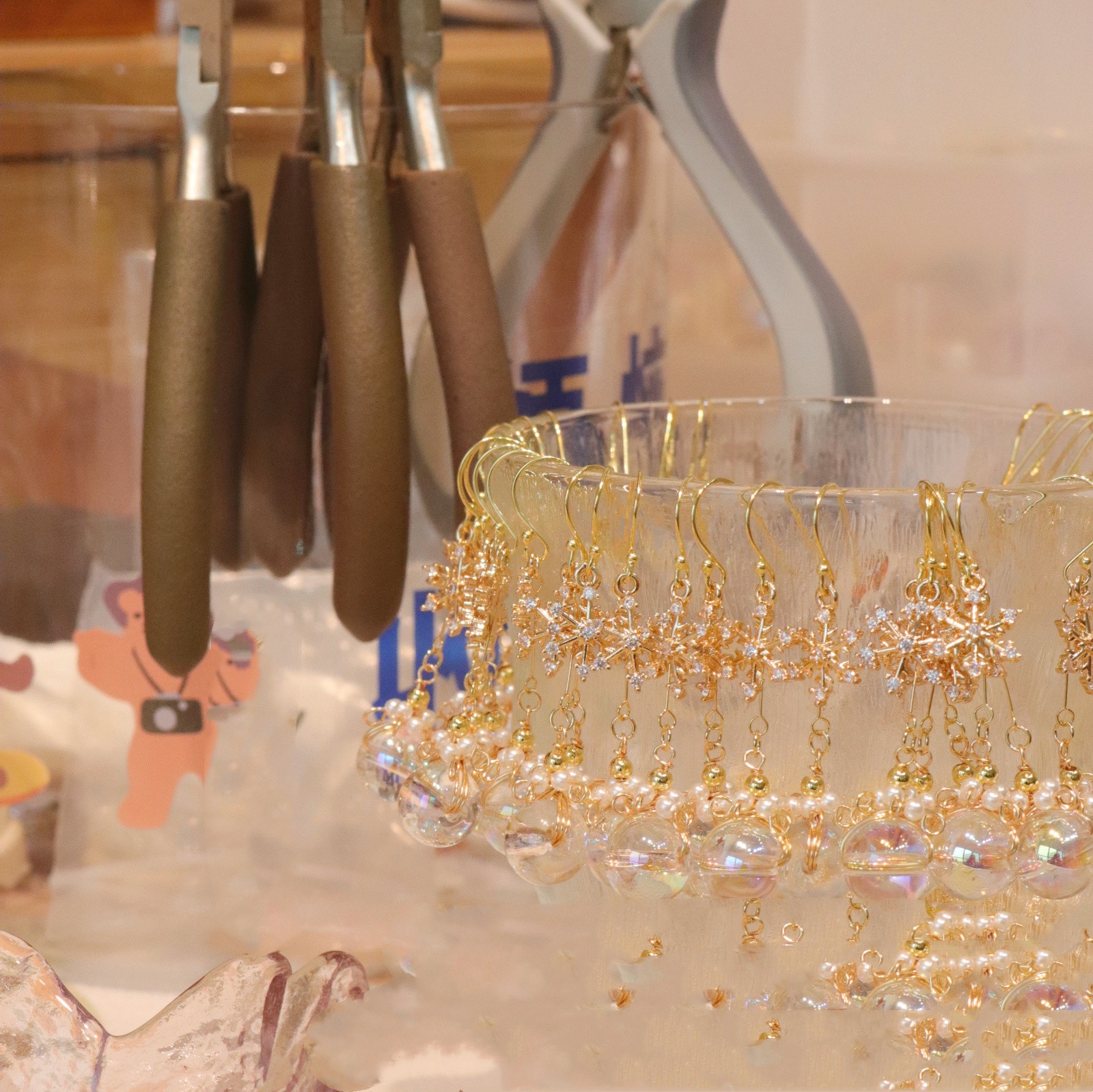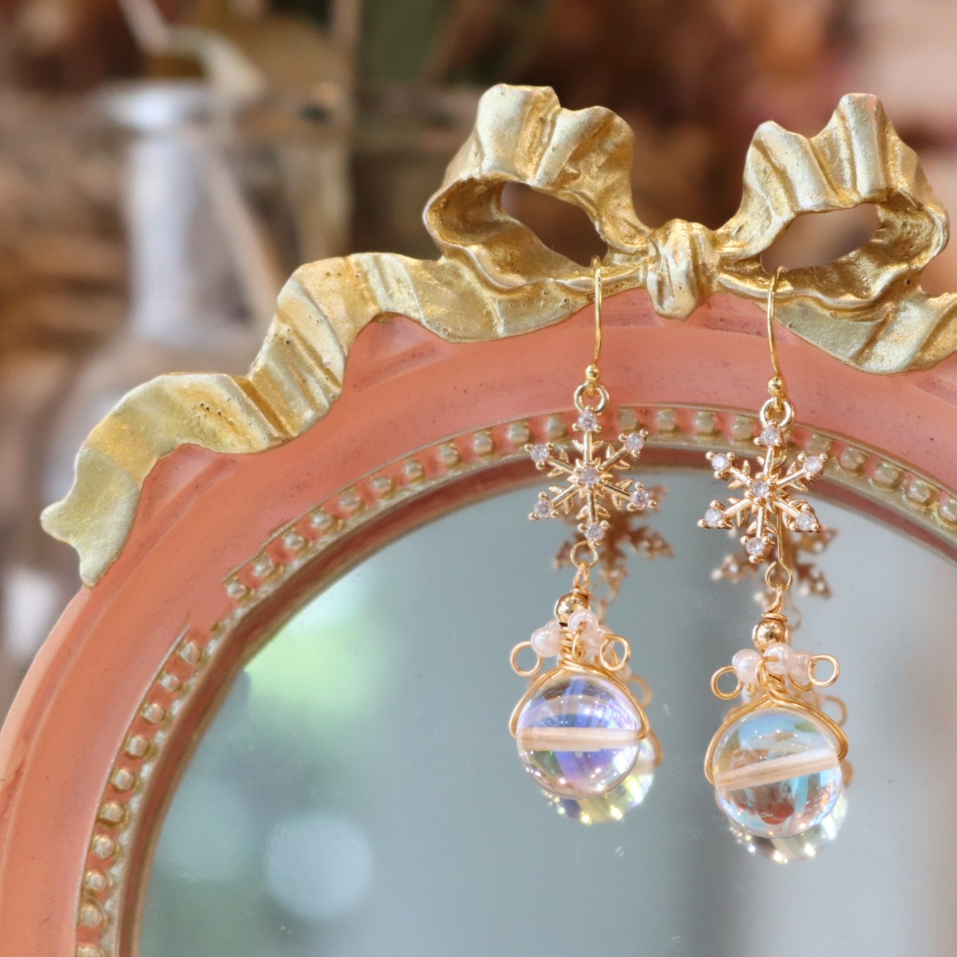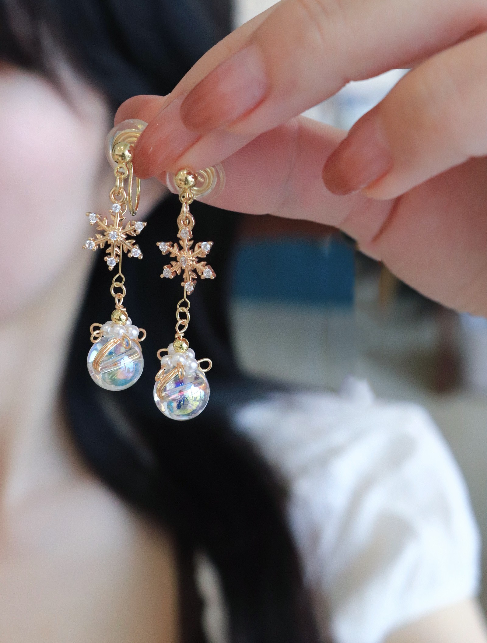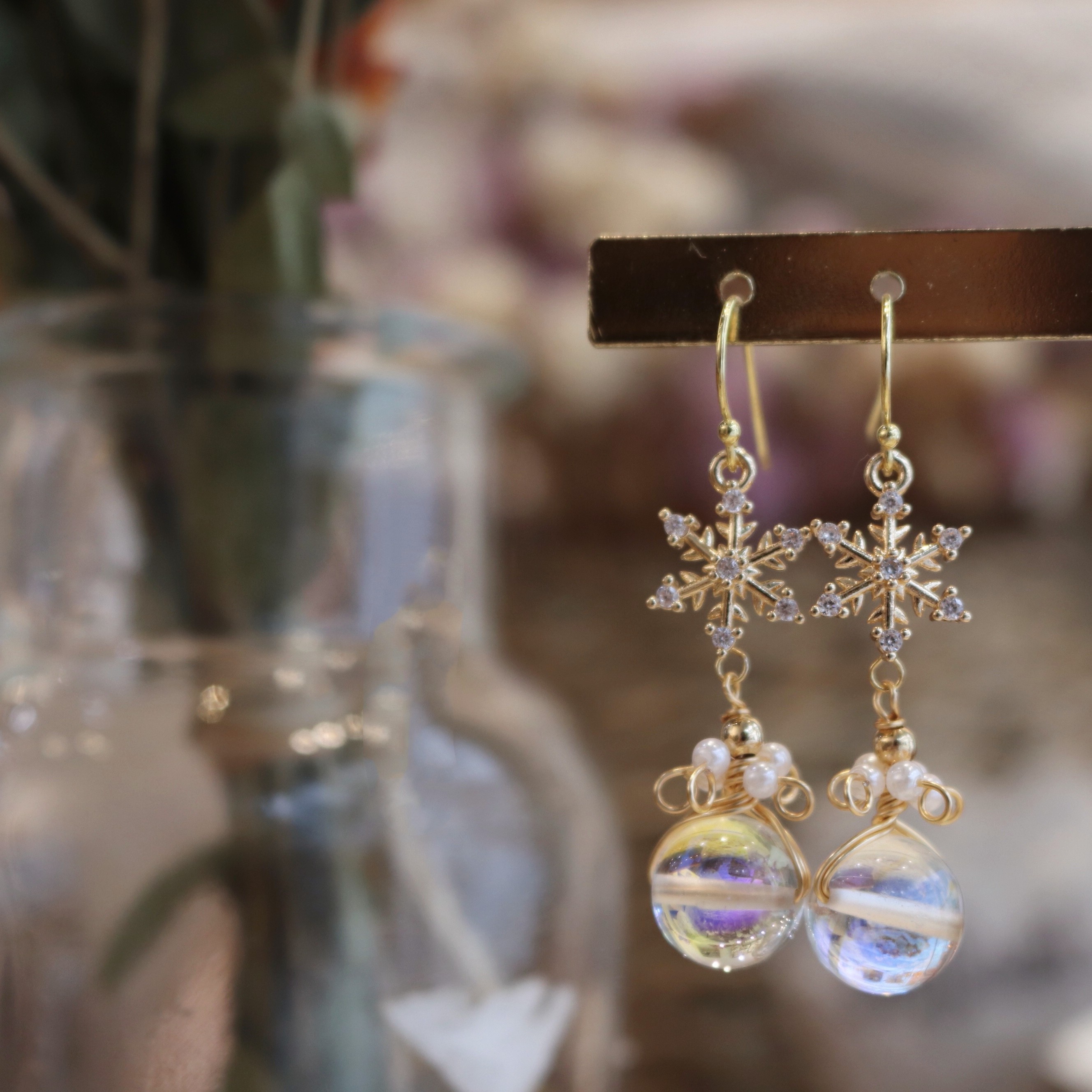 Product information:Material: Material: Natural pearl winding glass beads, plated with 18k gold snowflake pendant