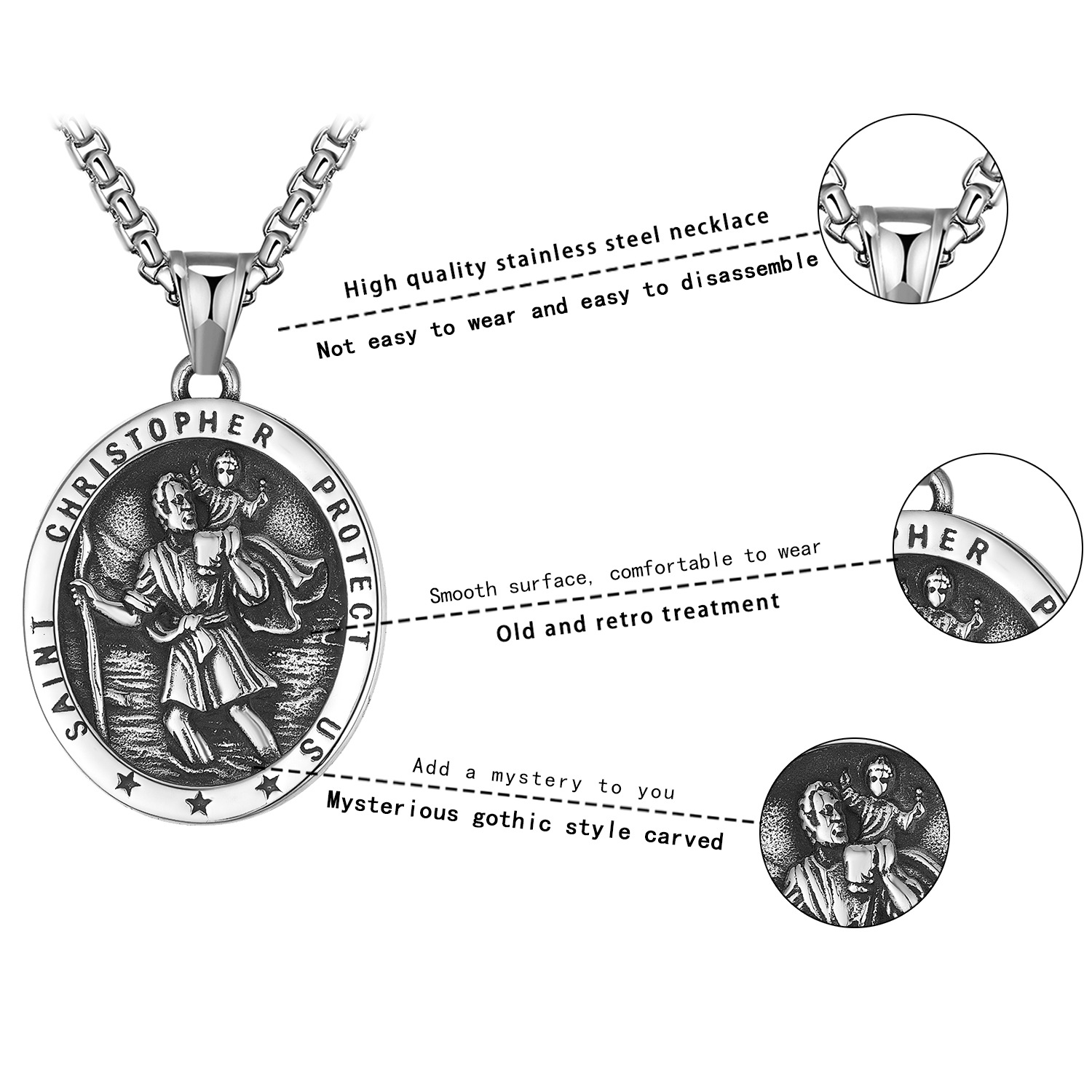 Product information:Type: pendantColor: Steel (with 60cm chain)Material: titanium steelShape: GeometricPopular elements: cartoon, AngelStyle: unisex style