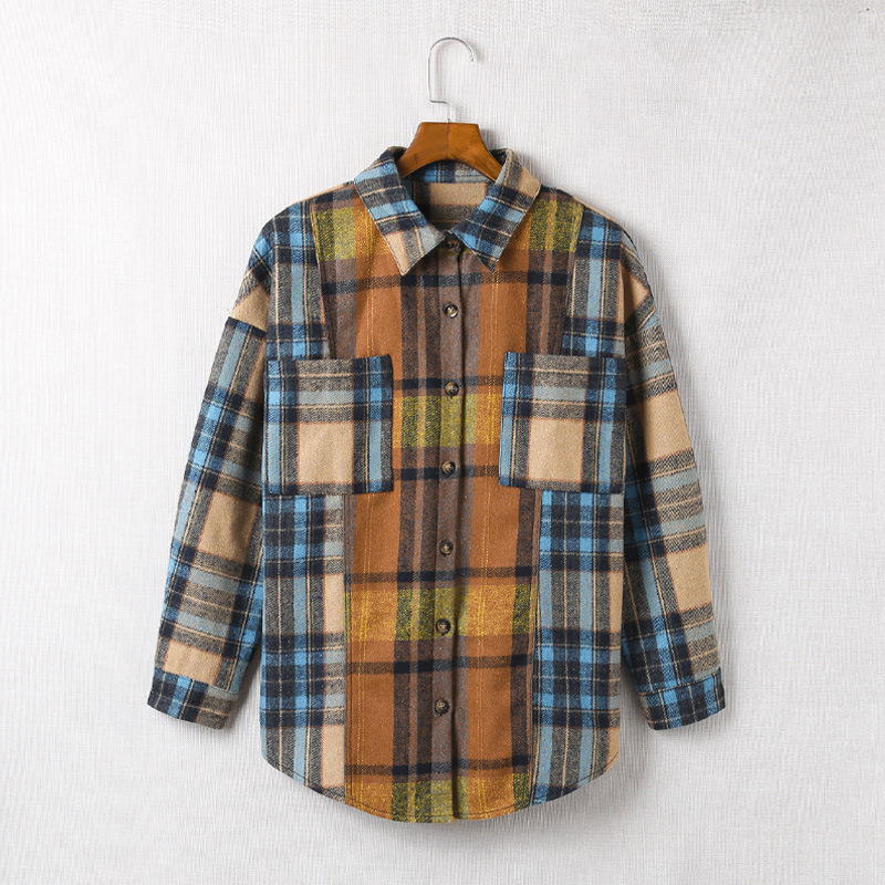 Product information: Pattern: printed checks Color: green, brown Size: S,M,L,XL,2XL Style type: Street hipster Popular elements: Plaid contrast color Style: Cardigan Fabric name: Polyester Style: European and American style Craft: Printing