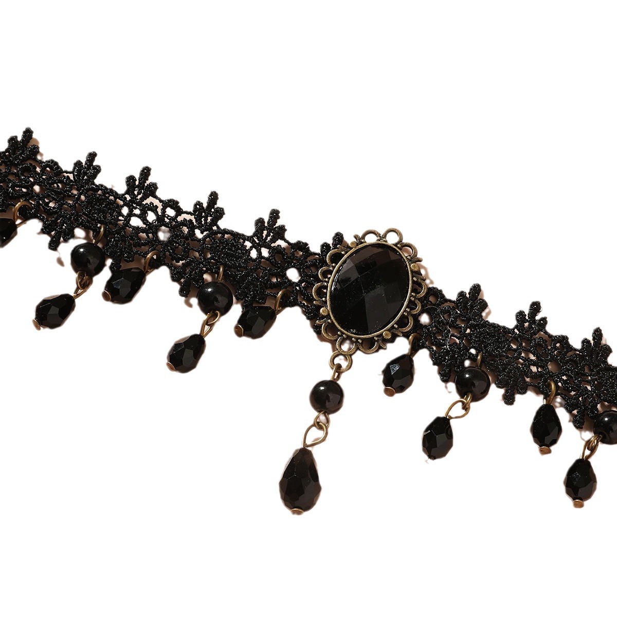 Product information:Treatment Process: Electroplating Color: Black Pendant material: Alloy Chain style: Regular chain Material: lace Style: none Circumference: 30cm or less