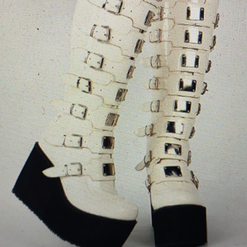 Product information:Color: WhiteShoe Upper material: artificial PUSock length: high cylinderSize: 35,36,37,38,39,40,41,42,43Applicable Gender: FemalePopular elements: belt buckleStyle: Mature