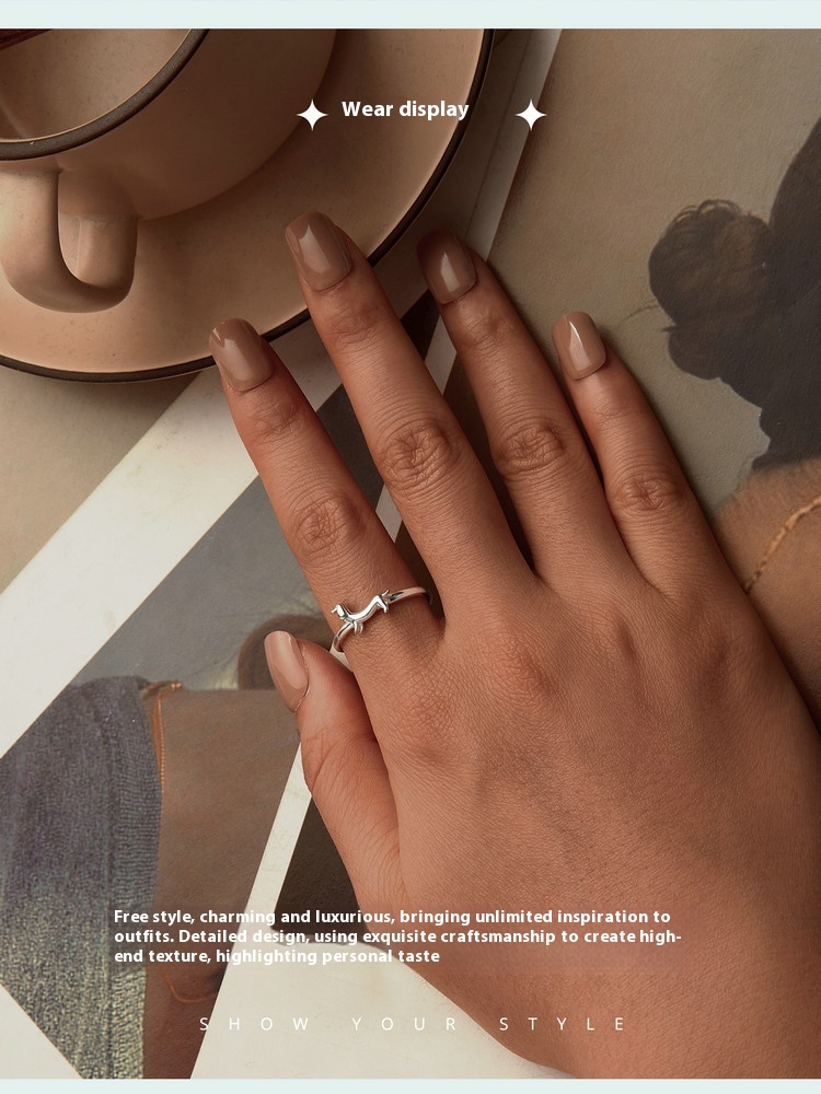 Women's Cute Sausage Dog Open Ring S925 Sterling Silver Adjustable Animal Ring Ornament