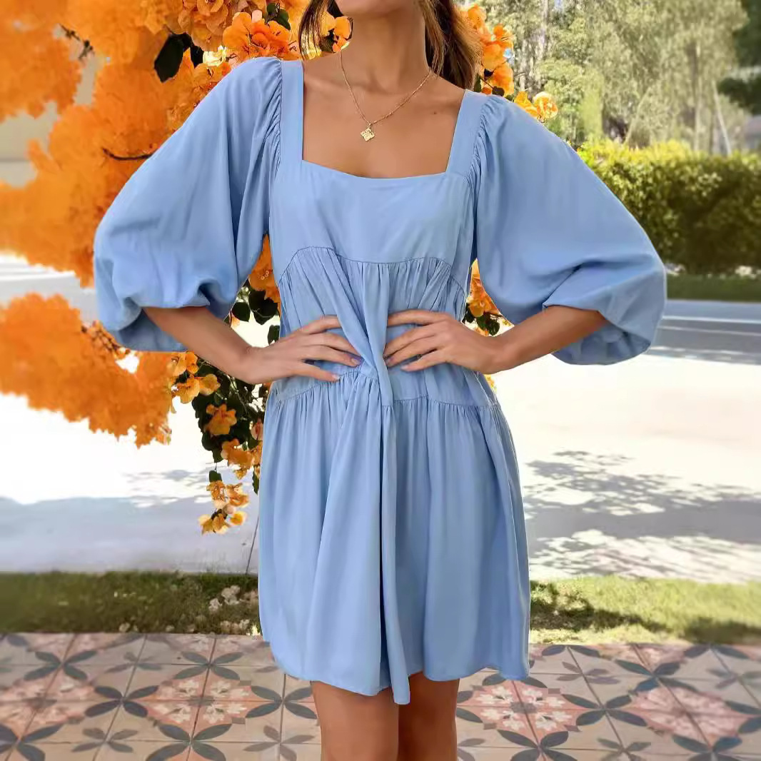 Product information: Pattern: solid color Skirt-type: A- line skirt Color: orange, light blue Waist type: loose waist Size: S,M,L,XL Style type: artistic retro Combination form: Single piece