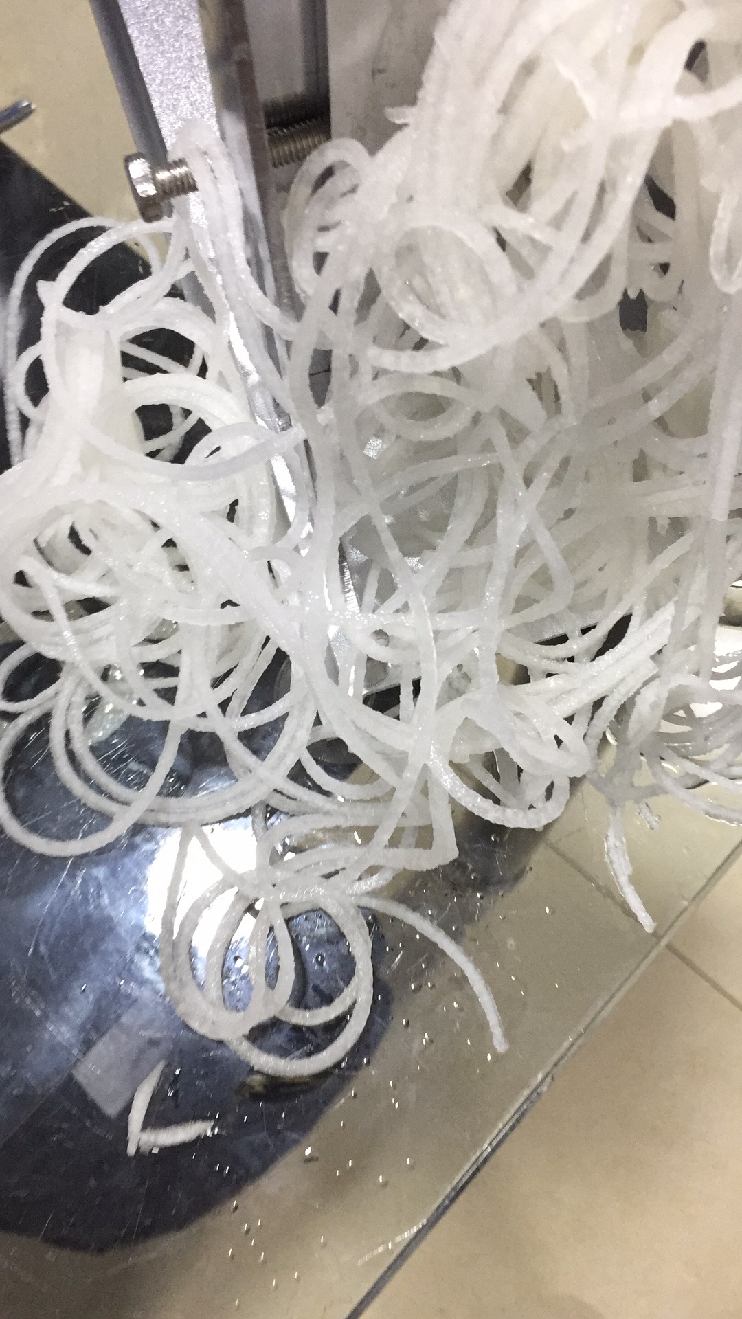 3. Shake the gong rod in one direction, and evenly slender radish shreds are twisted out from the other end of the blade.