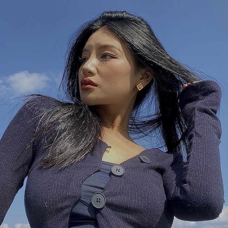 Color classification: French golden four-leaf clover Fritillaria earrings female niche temperament