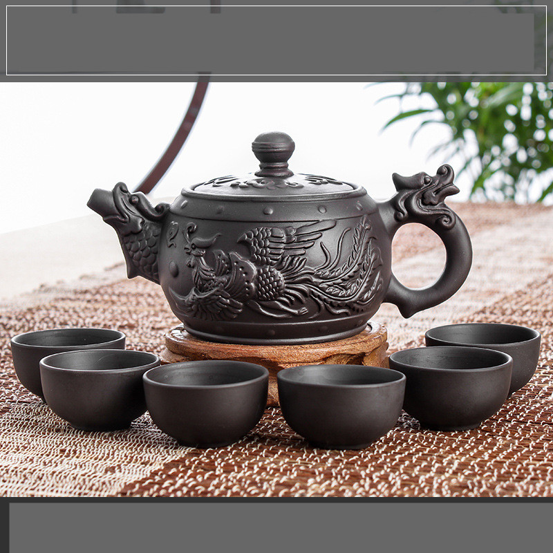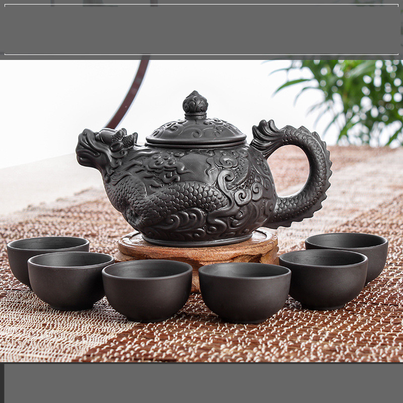 Color: Black Large Dragon Feiguang Dance Pot (send 6 cups), Red Large Dragon Feiguang Dance Pot (send 6 cups), Black Large Dragon Feiguang Dance Pot (send 6 cups), Red Large Dragon Feiguang Dance Pot (send 6 cups), Black Large Pine Crane Pot (send 6 cups)