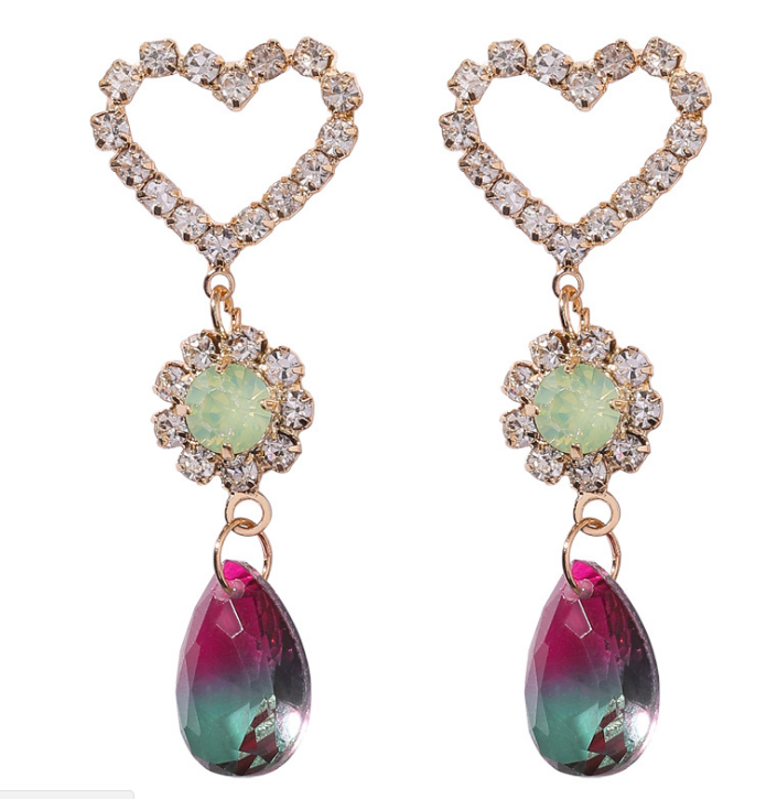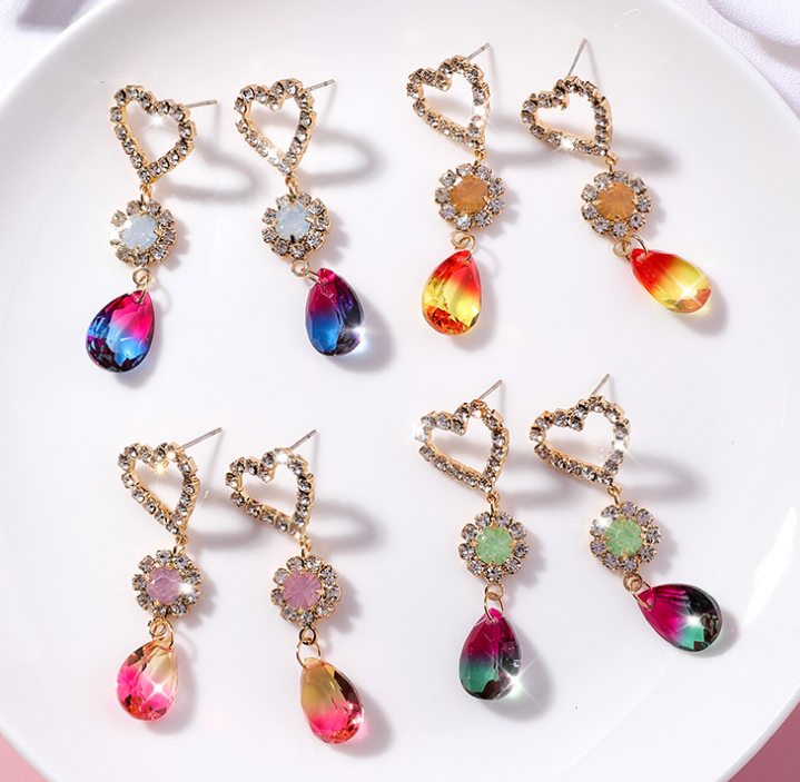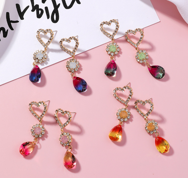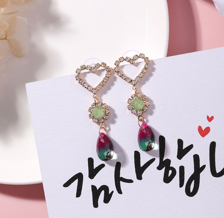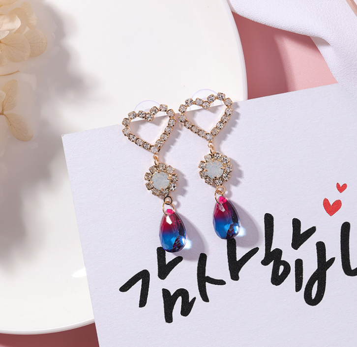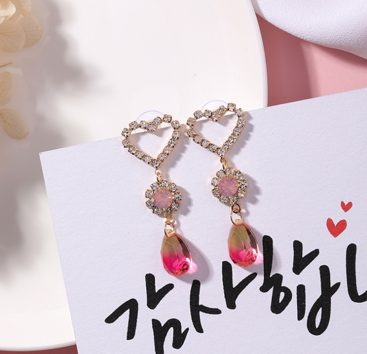 925 Silver Needle Girl Heart Gradient Drilling Water Drops Heart Scrub Earrings Simple Cute Heart Earrings