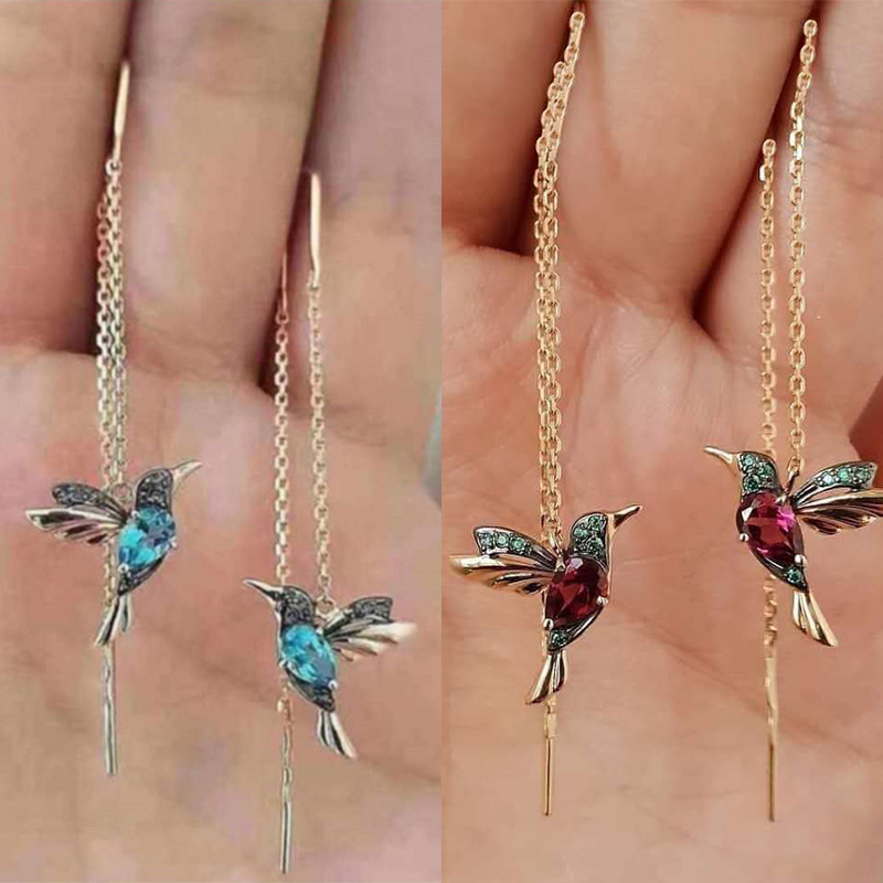 Bird inlaid zircon earrings