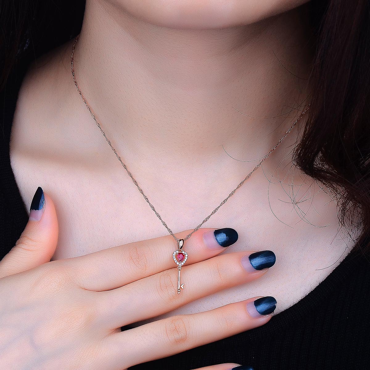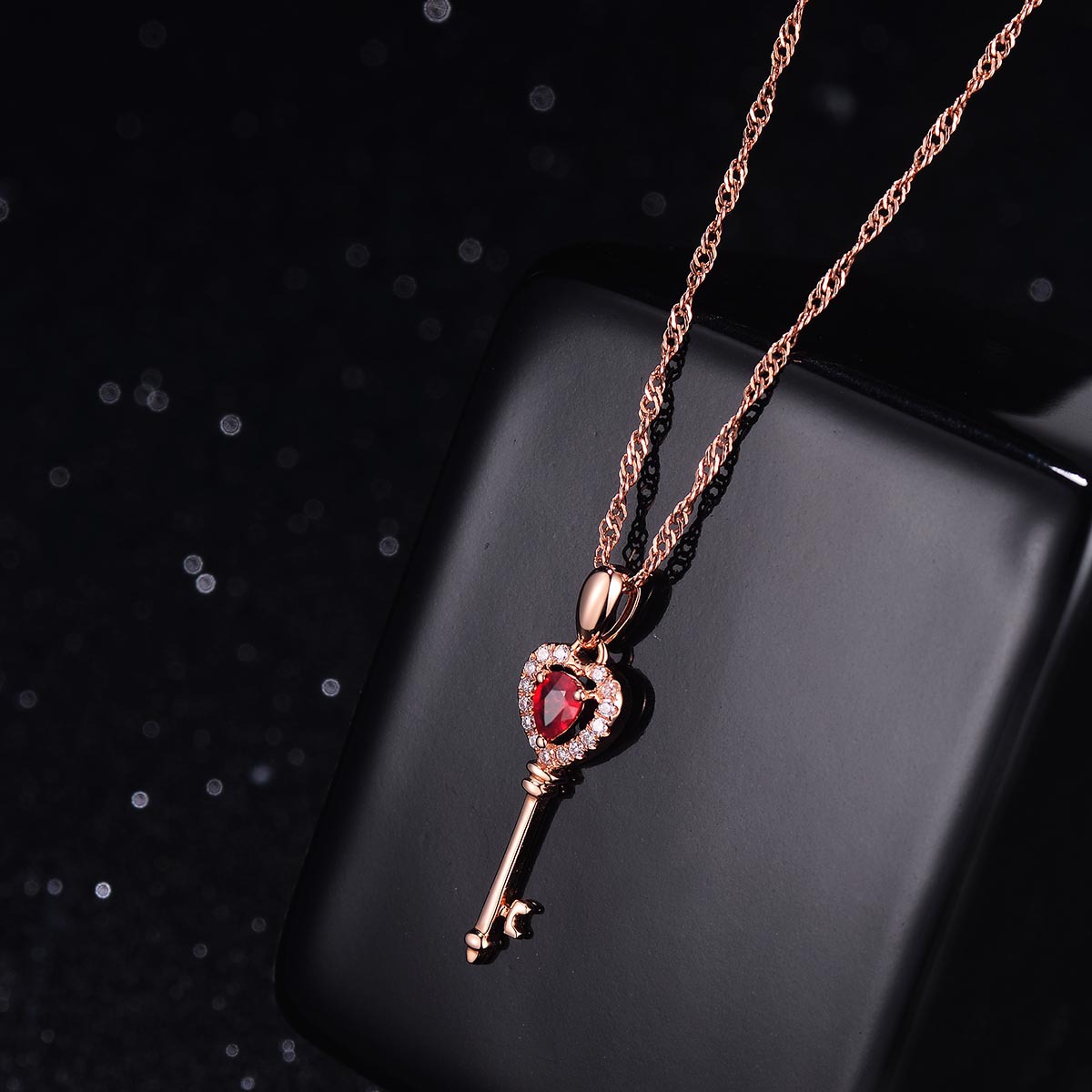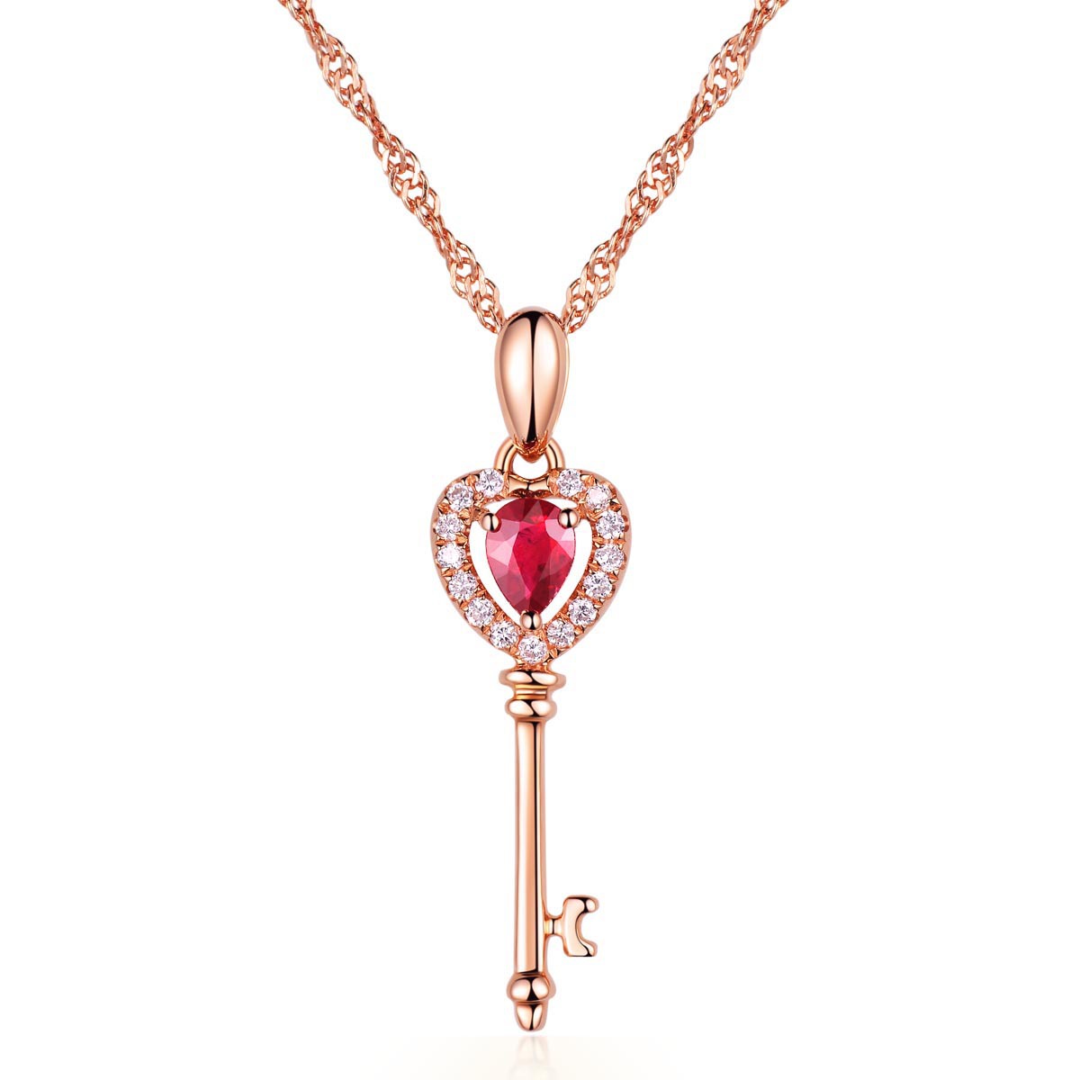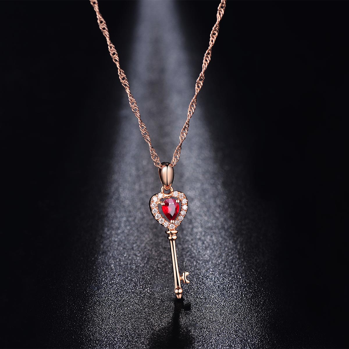 Color: Key drop pendant [without chain] rose gold plated, water wave chain [18 inch 45CM] rose gold plated