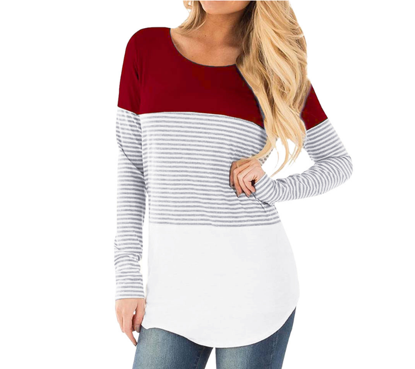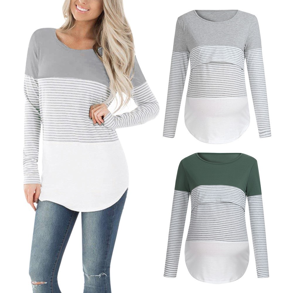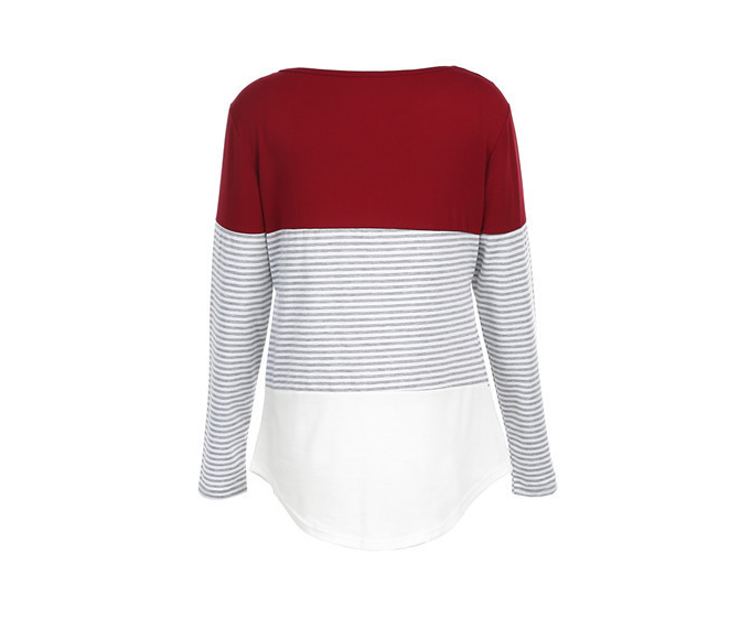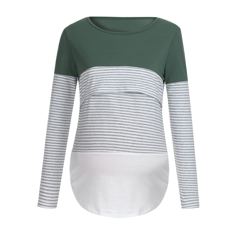 Striped stitching long sleeve pregnant women breastfeeding top T-shirt
