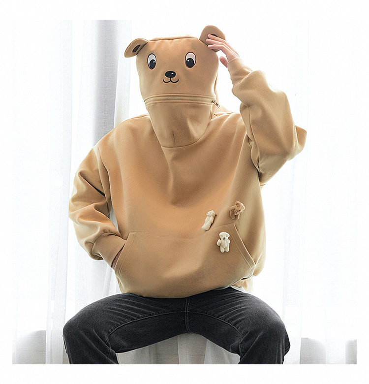 Color: Most Era-Baotou Bear Sweatshirt-White, Most Era-Baotou Bear Sweatshirt-Khaki, Most Era-Frog Sweatshirt#Green, Sapphire-Frog Sweatshirt#White, Sizzle-Frog Sweatshirt#Black