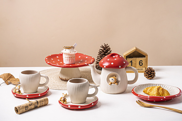 Cartoon Cute Good-looking Red Mushroom Ceramic Tableware Mug Dim Sum Plate Rice Bowl Instant Noodle Bowl Salad Bowl Spoon