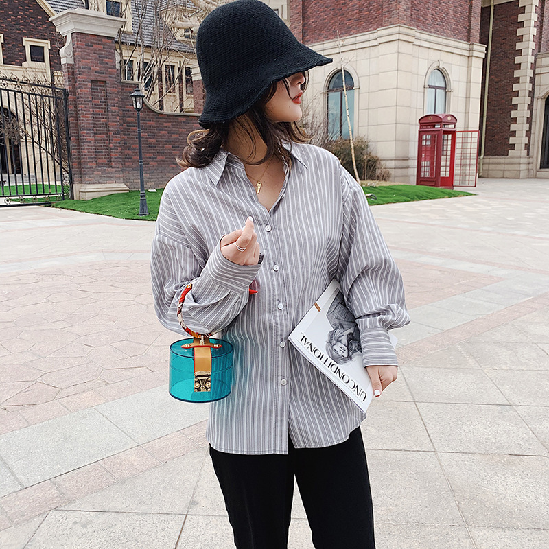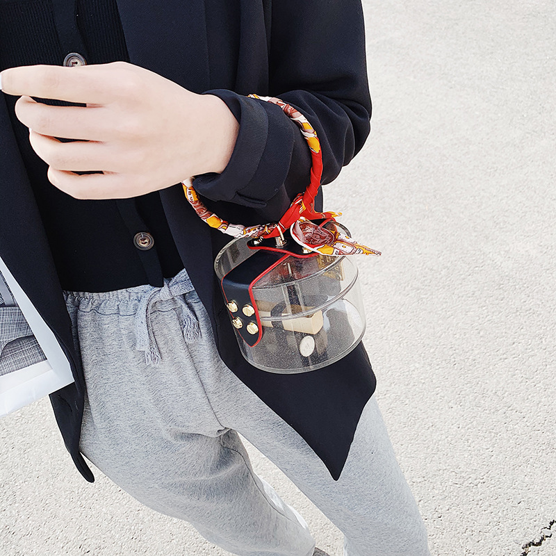 Material: PVCFabric texture: pvcLining texture: no liningBag shape: Jelly bagLuggage trend style: bucket bagOpening method: lockPopular elements transparent