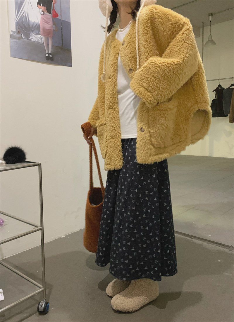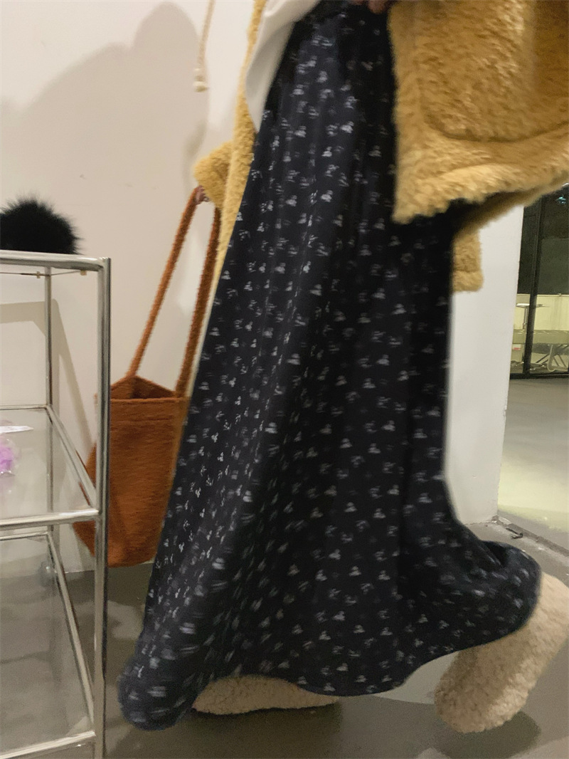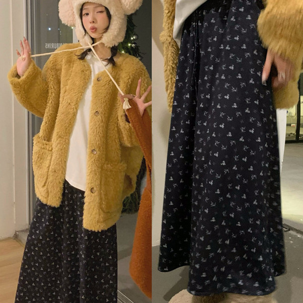 All-match And Sweet Velvet Elastic Waist Floral Skirt