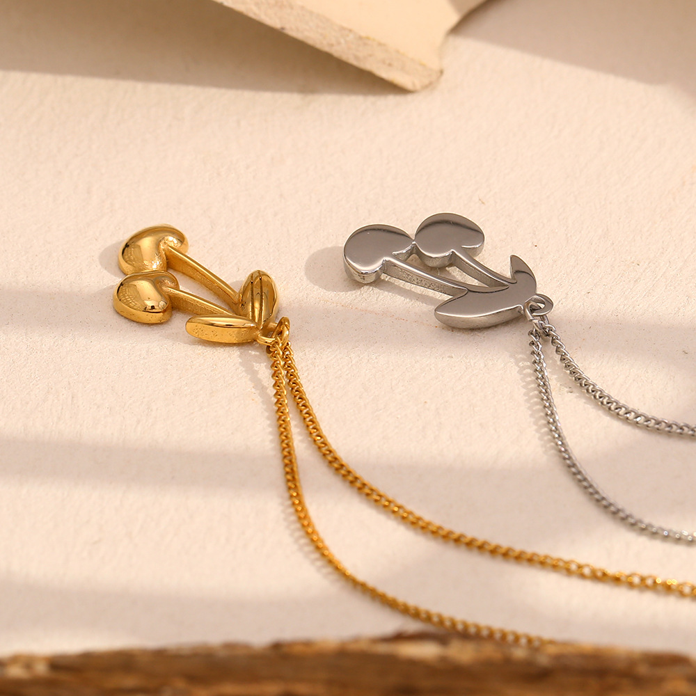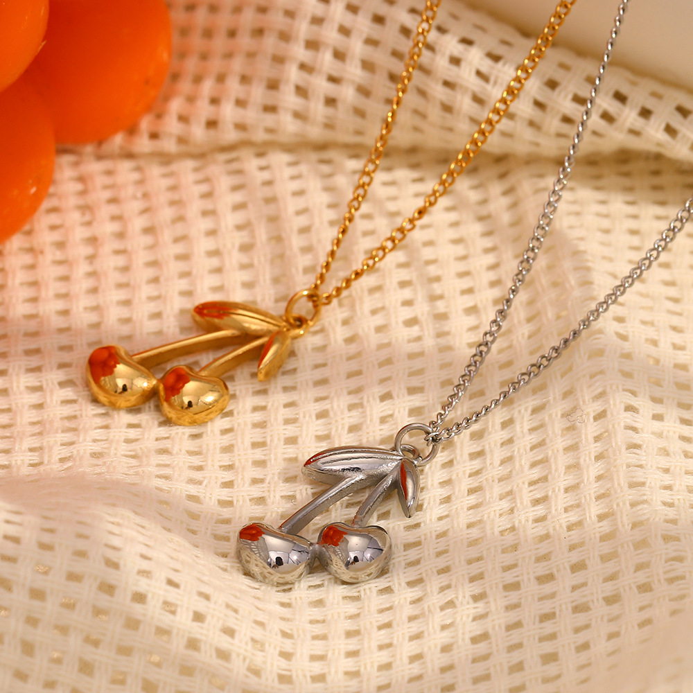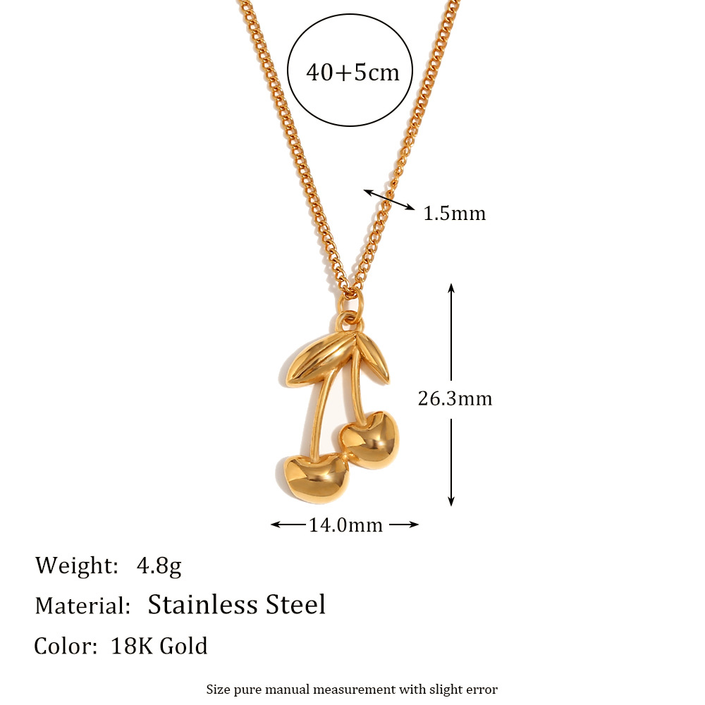 Product information:Color: Cherry support necklace-gold, Cherry support necklace-steel Applicable people: women Chain style: Regular chain Material: Stainless steel Shape: fruit Popular elements: Cherry